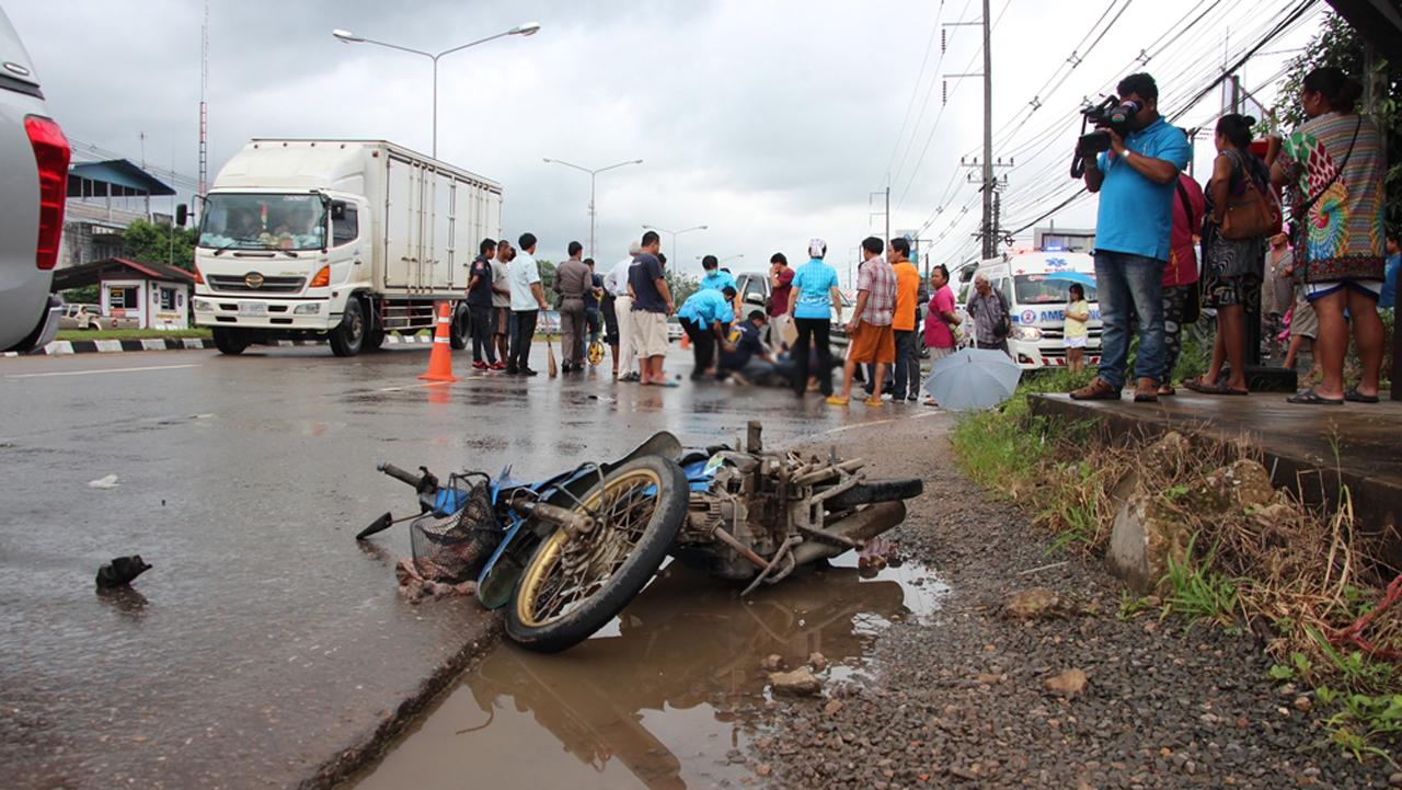 ชีวิตแม่ค้า รีบร้อนนำปลาใส่ตะกร้าจะไปขาย ขี่จยย.ฝ่าฝนเลี้ยวข้ามถนนตัดหน้ารถปิกอัพ ถูกชนกระเด็นไปตกตายอยู่บนถนนข้างกองปลาทะเลที่ขนมา ส่วนคู่กรณีไม่หนี บอกทั้งเบรกและหักหลบแล้ว แต่ไม่พ้น...