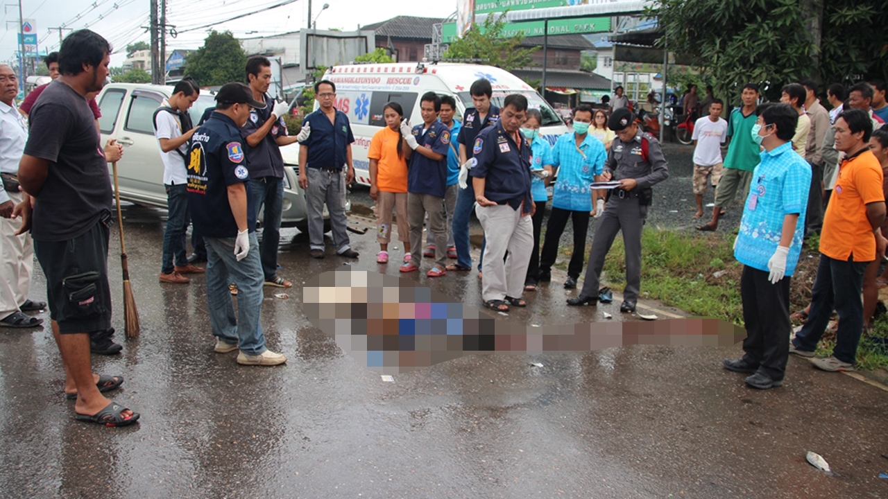 ในที่เกิดเหตุ พบศพนางประทุม รุ่งเรือง อายุ 49 ปี อยู่บ้านเลขที่ 50/2 ม.6 ต.เกาะเปริด อ.แหลมสิงห์ จ.จันทบุรี แม่ค้าขายปลาสด นอนเสียชีวิตอยู่บนพื้นถนน สภาพแขนขาหักทั้งสองข้าง ใกล้กันพบรถกระบะอีซูซุ สีบรอนซ์ หมายเลขทะเบียน บจ 4866 ตราด จอดอยู่ข้างทาง สภาพด้านหน้ามีร่องรอยถูกเฉี่ยวชน จนพังเสียหาย โดยมีนายขวัญชัย หงษ์กาย อายุ 38 ปี ชาวบ้าน ม.1 ต.ห้วยแร้ง อ.เมืองตราด เป็นคนขับ ยืนรอให้ปากคำกับเจ้าหน้าที่ตำรวจ ห่างกันเล็กน้อยพบรถจยย.ฮอนด้าเวฟ สีน้ำเงิน หมายเลขทะเบียน กมม-792 จันทบุรี ของผู้ตายล้มอยู่ในแอ่งน้ำหน้าศาลาที่พักริมทาง สภาพด้านหน้าถูกชนจนพัง พร้อมกับปลาสดกระจายเต็มพื้นถนน