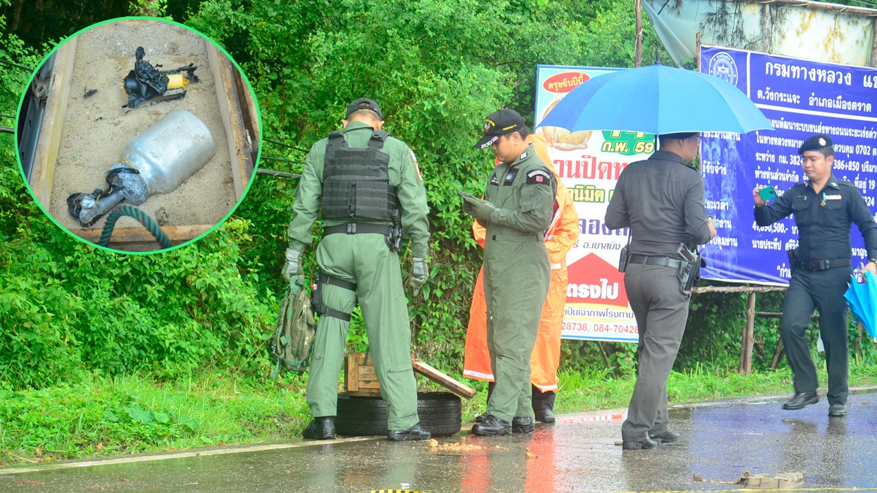 คนมือบอนไม่มีอะไรทำ นำกาพ่นสีกับที่อุปกรณ์ปั๊มน้ำมาพันเทปทำให้เหมือนระเบิดแสวงเครื่อง วางไว้ริมถนนสุขุมวิท อ.เขาสมิง จ.ตราด ต้องแจ้งอีโอดีมาเก็บกู้กันจนเป็นที่วุ่นวาย นอภ.ยืนยันมีการตรวจตราเข้มแข็ง มาเที่ยวได้ปลอดภัยหายห่วง...