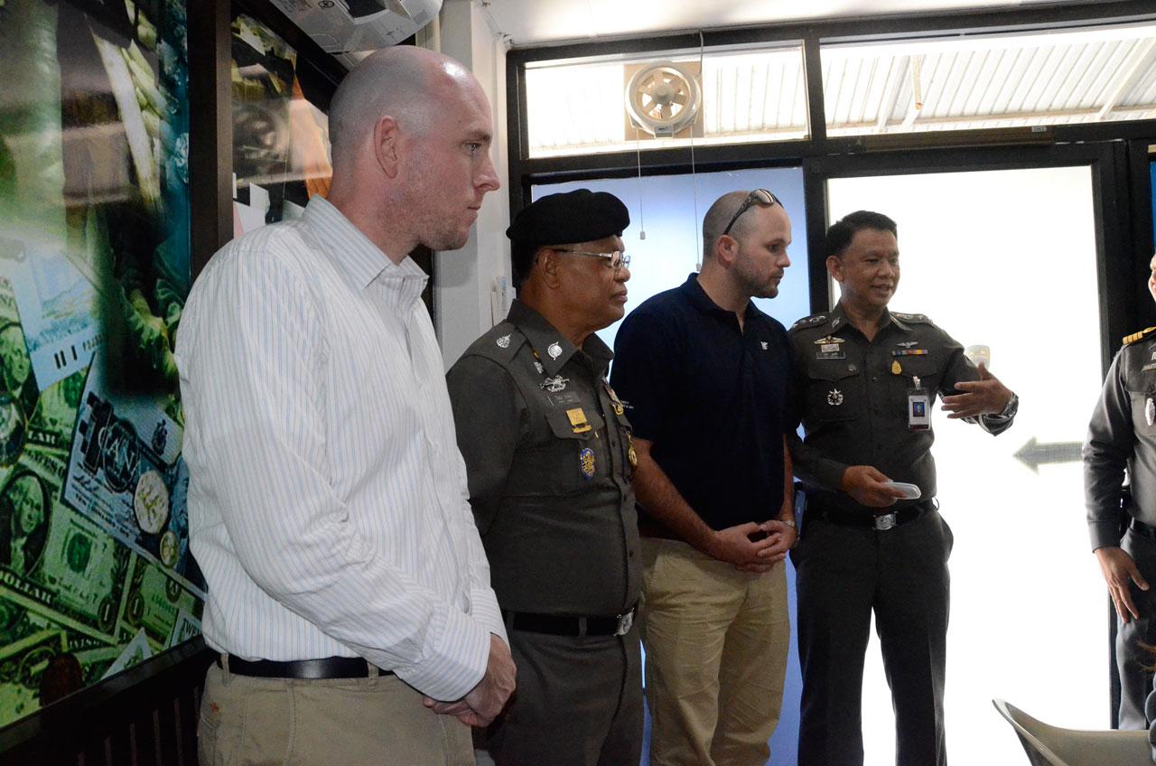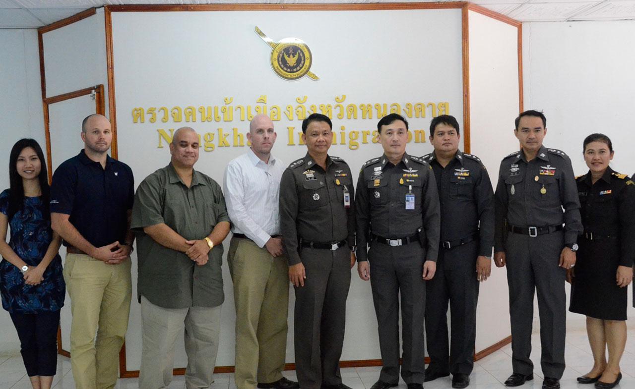 เมื่อวันที่ 25 ส.ค. 58 นายไบรอัน แม็คเฟอร์สัน (Bryan Mcpherson) ผู้ช่วยทูตสหรัฐอเมริกาประจำประเทศไทย กระทรวงความมั่นคง นายโทมัส เฮด (Thomas Haid) และนายเรมอน ดีลิซ (Ramon Deliz) ผู้เชี่ยวชาญงานด้านการป้องกันปราบปรามการค้ามนุษย์ สหรัฐอเมริกา เดินทางมายังตรวจคนเข้าเมืองหนองคาย เพื่อให้การสนับสนุนภารกิจการป้องกันการค้ามนุษย์ของจังหวัดหนองคาย โดยได้แลกเปลี่ยนข้อคิดเห็น ให้คำแนะนำ พร้อมสอบถามการปฏิบัติงานของตรวจคนเข้าเมืองหนองคายที่กองกำกับการตรวจคนเข้าเมืองหนองคาย จากนั้นได้ไปชมการดำเนินการตรวจสอบคัดกรองบุคคลที่ด่านพรมแดนสะพานมิตรภาพไทย-ลาว แห่งที่ 1 โดยมี พ.ต.อ.พิชญ์วุฒิ สงวนสมบัติศิริ รอง ผบก.ตม.4 และ พ.ต.อ.พัลลภ สุริยกุล ณ อยุธยา ผกก.ตม.หนองคาย นำคณะให้ข้อมูล