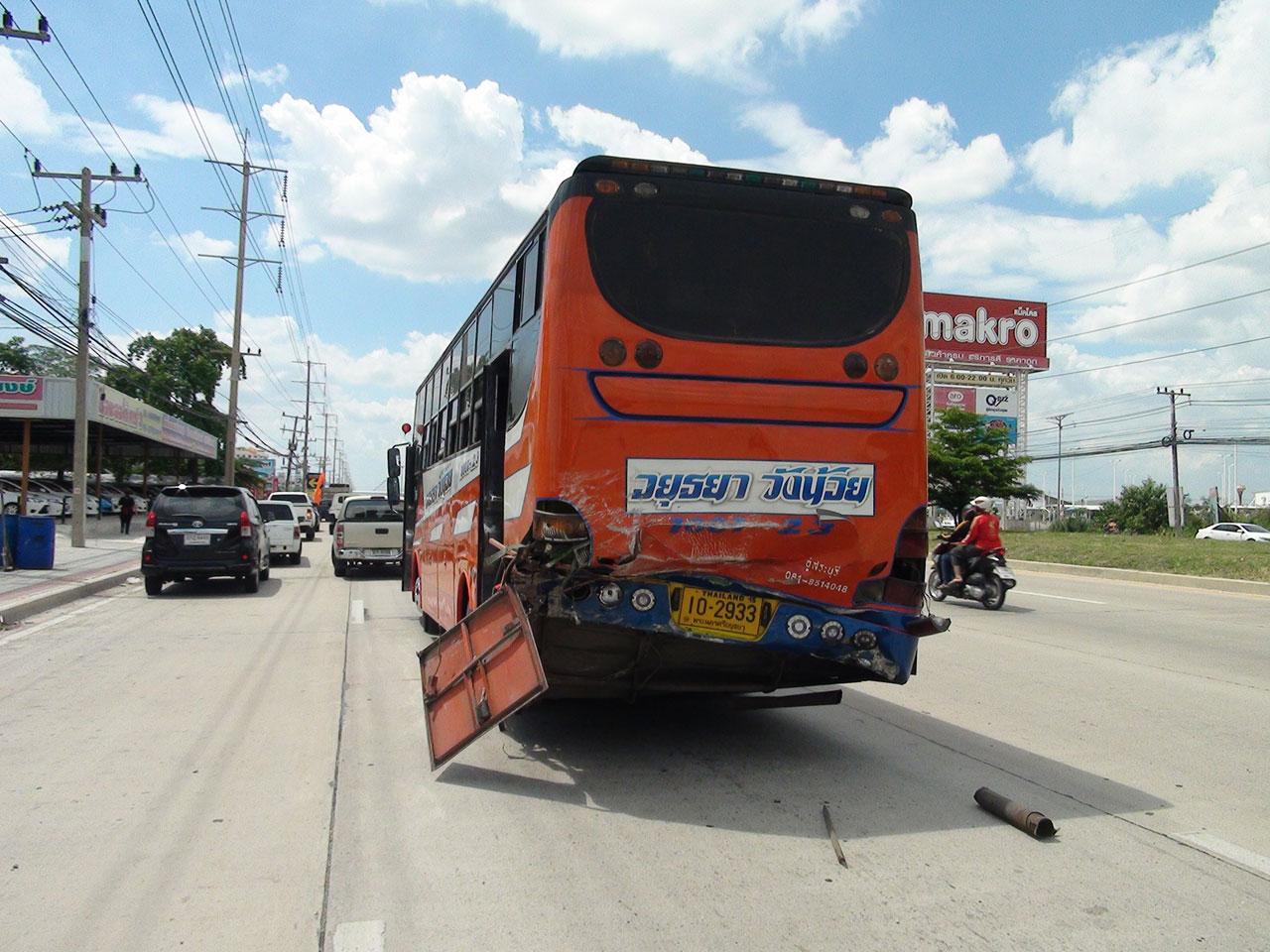 จากการสอบสวน นายขวัญเมือง คงเสมา อายุ 56 ปี บ้านอยู่ 19/1 ม.4 ต.บ้านหีบ อ.อุทัย จ.พระนครศรีอยุธยา ผู้ขับรถบัสให้การว่า ขับมาจาก อ.วังน้อย เพื่อไปส่งผู้โดยสารที่ตัวเมืองพระนครศรีอยุธยา จำนวน 20 คน เมื่อมาถึงที่เกิดเหตุวิ่งอยู่เลนขวาสุด จากนั้นได้ยินเสียงเหมือนมีอะไรมากระแทกท้ายรถอย่างแรง ทำให้รถเกือบเสียหลัก จึงประคองรถแล้วหยุดรถ จากนั้นลงไปดูพบว่ามีรถปิกอัพของผู้เสียชีวิตตกลงไปข้างทางแล้ว จึงได้โทรแจ้งเจ้าหน้าที่ตำรวจ
