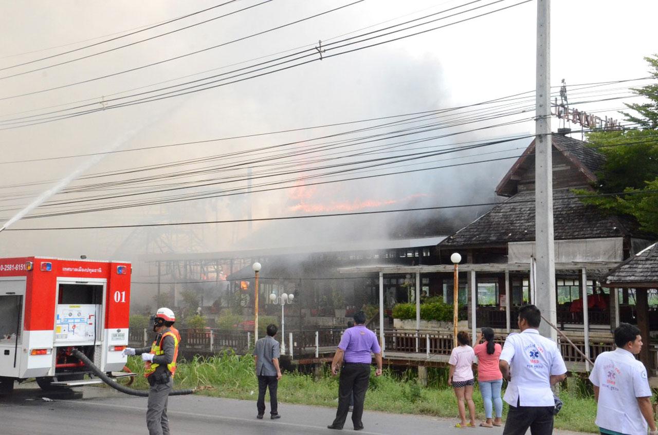 ไฟไหม้ร้าน ‘ถึงพริก ถึงขิง’ ร้านอาหารดังเมืองปทุมฯ พ่อครัวได้ยินเสียงเหมือนไฟช็อตที่อาคารไม้ที่ใช้รับรองลูกค้า ก่อนจะมีเปลวไฟลุกพรึบขึ้น รีบไปช่วยกันดับแต่เอาไม่อยู่ สุดท้ายต้องแจ้งรถดับเพลิง ใช้เวลาดับกว่า 1 ชม. เสียหายกว่า 10 ล้าน