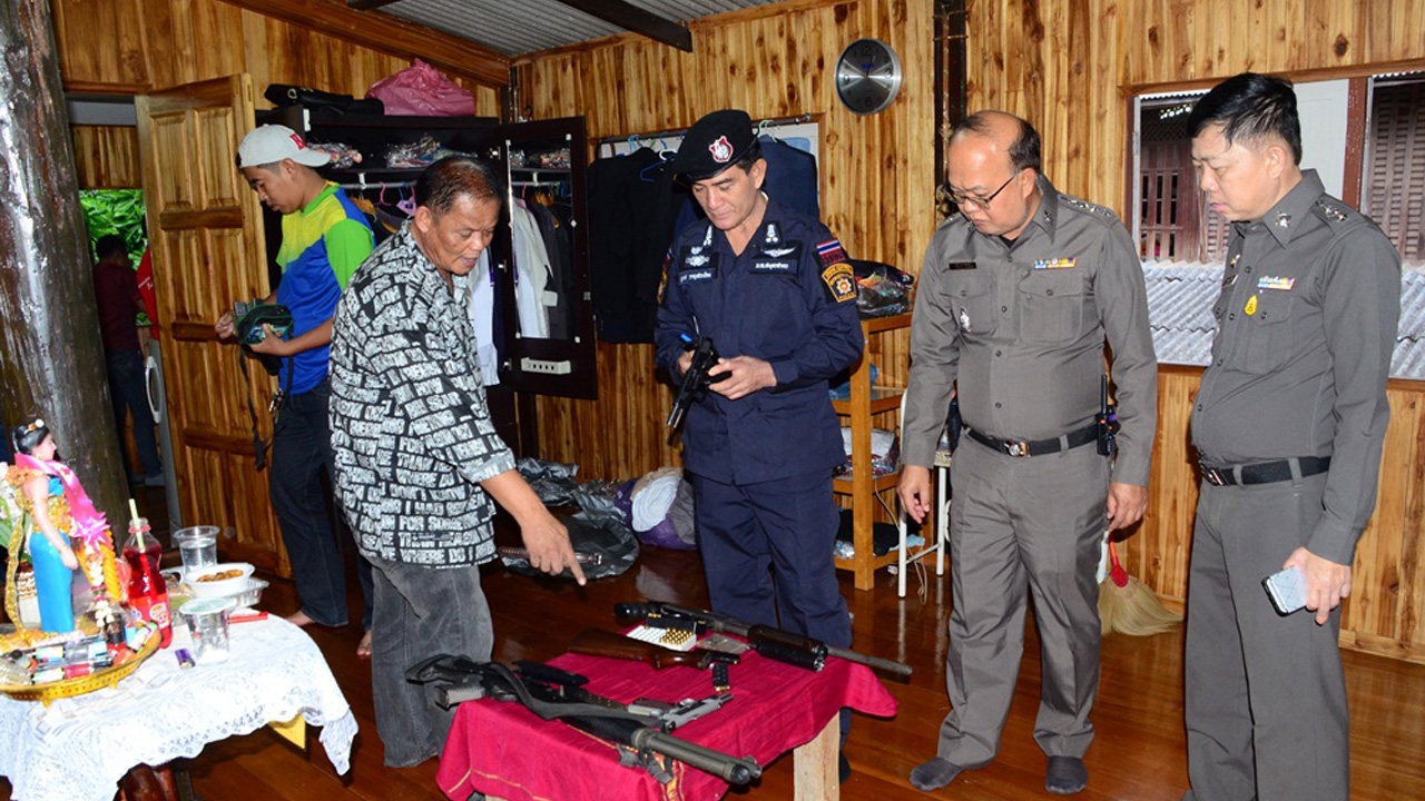 ขณะเจ้าหน้าที่บุกเข้าตรวจค้นนายปราโมทย์กำลังอาบน้ำอยู่ในห้องน้ำชั้นล่าง เมื่อได้ยินเสียงสุนัขเห่าได้เปิดประตูห้องน้ำออกมาและเห็นเจ้าหน้าที่ นายปราโมทย์ได้รีบนุ่งผ้าเช็ดตัวและวิ่งหลบหนีขึ้นไปบนชั้น 2 ของบ้าน เข้าห้องนอนส่วนตัวและล็อกประตูห้องแน่นหนา เจ้าหน้าที่ตำรวจวิ่งตามขึ้นไปและใช้เวลาประมาณ 3-4 นาทีจึงสามารถเปิดห้องได้ พบภายในเป็นห้องนอนส่วนตัวของนายปราโมทย์ เจ้าหน้าที่แสดงหมายค้นและทำการตรวจสอบ พบยาบ้าจำนวน 2 เม็ด พร้อมกระดาษฟอยล์ม้วนพันเป็นอุปกรณ์การเสพ 1 ชิ้น บนหัวเตียงนอน ใกล้กันในถังขยะพบกระดาษสีน้ำตาลและเทปพันสายไฟสีดำลักษณะคล้ายเศษวัสดุที่ใช้ห่อยาบ้าจำนวนหลายชิ้น นอกจากนี้ยังพบอาวุธปืนพกสั้นขนาด 45 มม.จำนวน 2 กระบอก ปืนลูกซองยาว 2 กระบอก ท่อเก็บเสียงปืนสั้น 1 ชิ้น และเครื่องกระสุนจำนวนมาก