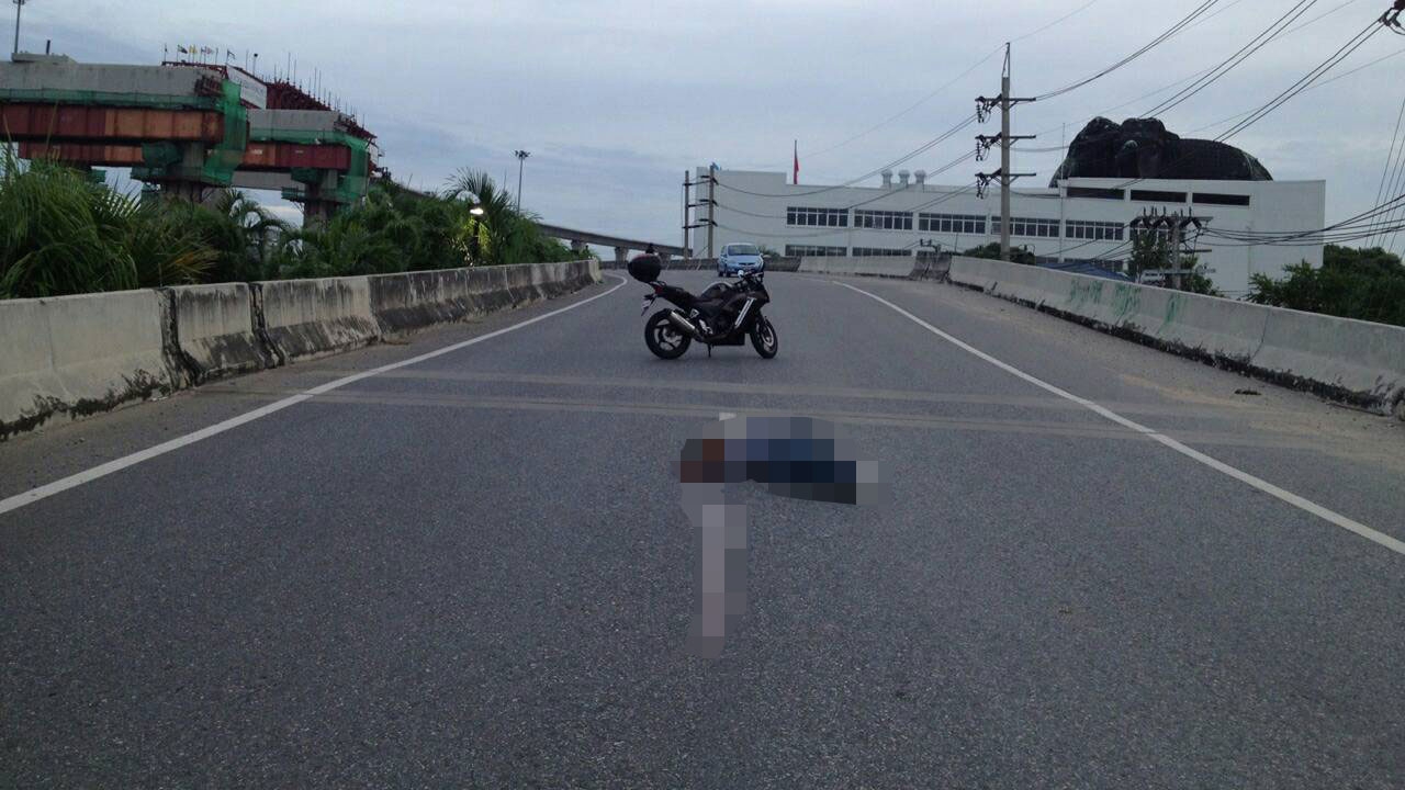เมื่อเวลา 07.00 น.วันที่ 27 ส.ค.58 ร.ต.ท.ชินทัตต์ วิเชียรเจริญ พงส.สภ.เมืองสมุทรปราการ รับแจ้งเหตุว่ามีผู้เสียชีวิตอยู่บนเชิงสะพาน ช่วงทางลงทางด่วนกาญจนาภิเษกจากด้านพระราม 2 มุ่งหน้าเข้าสมุทรปราการ หน้าช้างสามเศียร ต.ปากน้ำ อ.เมือง จ.สมุทรปราการ จึงพร้อมด้วย เจ้าหน้าที่มูลนิธิร่วมกุศลสมุทรปราการเดินทางไปตรวจสอบ ที่เกิดเหตุพบศพชายไม่ทราบชื่ออายุประมาณ 50 ปี สวมเสื้อแขนยาวสีเทา กางเกงยีนส์สีน้ำเงิน รองเท้าผ้าใบสีขาว สภาพนอนตะแคงจมกองเลือด ตรวจสอบสภาพศพมีบาดแผลที่ศีรษะขนาดใหญ่ ตรวจค้นภายในตัวผู้ตายไม่พบเอกสารใด