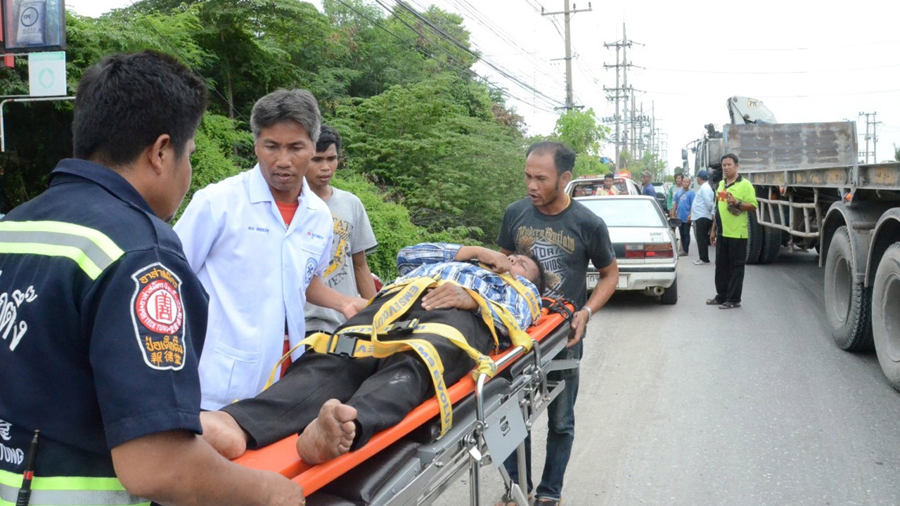 เมื่อวันที่ 27 ส.ค. 58 พ.ต.ท.สนั่น บุญชู พนักงานสอบสวน สภ.คูบางหลวง จ.ปทุมธานี ได้รับแจ้งมีอุบัติเหตุรถชนกันบริเวณสามแยกไฟจราจรกำนันวิรัตน์ ถ.ปทุมธานี-ลาดหลุมแก้ว หมู่ 7 ต.คูบางหลวง อ.ลาดหลุมแก้ว จ.ปทุมธานี มีผู้ได้รับบาดเจ็บ จึงรุดไปตรวจสอบพร้อมหน่วยกู้ชีพ อบต.คูบางหลวง และอาสามูลนิธิป่อเต็กตึ๊ง ที่เกิดเหตุเลยแยกไฟจราจรไปเล็กน้อย บนไหล่ทางพบรถยนต์ฮอนด้า ซีวิค สีขาว หมายเลขทะเบียน กจ 5007 ปทุมธานี โดยมี นายสุธรรม เปรมปรี อายุ 51 ปี อาชีพซ่อมรถ เป็นคนขับ ภายในรถที่เบาะหน้าซ้ายพบ นายพินิจ ผุดผ่อง อายุ 60 ปี ได้รับบาดเจ็บที่ไหล่ซ้าย ไม่สามารถขยับได้ เจ้าหน้าที่กู้ชีพและกู้ภัยจึงได้ช่วยกันนำแผ่นบอร์ดมารองรับ และรีบนำส่ง รพ.ปทุมธานี เนื่องจากคนเจ็บกล่าวว่าเป็นโรคหัวใจ ใกล้กันที่เลนซ้าย มีรถบรรทุก พ่วงแม่หมายเลขทะเบียน 82-3621 ปทุมธานี พ่วงลูก หมายเลขทะเบียน 81-2061 ปทุมธานี มีร่องรอยถูกชนที่ใต้ท้องรถและช่วงบริเวณล้อหลังซ้ายของตัวแม่ มี นายดนุพล มินทมร อายุ 29 ปี เป็นคนขับ ยืนรอให้การอยู่ข้างรถ