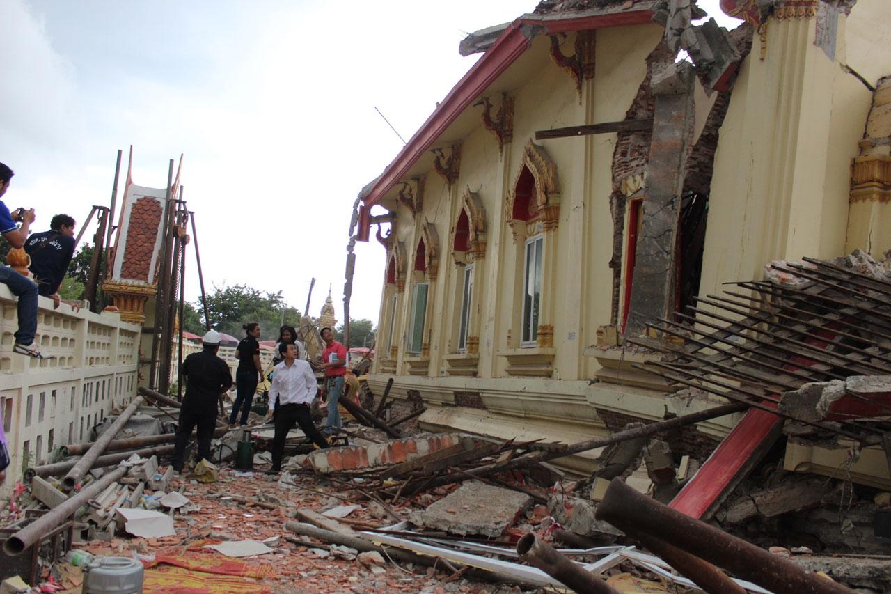 ต่อมา เมื่อเวลา 16.00 น. วันเดียวกัน ศ.ดร.อมร พิมานมาศ อายุ 43 ปี นักวิจัย สกว.รองเลขาธิการสภาวิศวกร ผู้เชี่ยวชาญด้านโครงสร้างอาคารคอนกรีต เดินทางมาดูซากโบสถ์ถล่มที่ วัดต้นเชือก ม.4 ต.บ้านใหม่ อ.บางใหญ่ จ.นนทบุรี กล่าวว่าจากการตรวจสอบพบว่า อุปกรณ์การยกไม่ได้มาตรฐาน รับน้ำหนักตัวโบสถ์ไม่ไหว และไม่มีอะไรรองรับน้ำหนักตัวโบสถ์ จากการตรวจสอบพบว่า ใช้เพียงดึงขึ้นไว้ลอยๆ อย่างเดียว ทำให้รับน้ำหนักไม่ไหว และไม่มีคานคอยรองจึงทำให้โบสถ์หล่นลงมาทั้งหลัง ต่อไปนี้ถ้ามีการยกโบสถ์ต้องมีวิศวกรควบคุมการยกโบสถ์ คำนวณน้ำหนักและมีขั้นตอนอย่างถูกต้อง