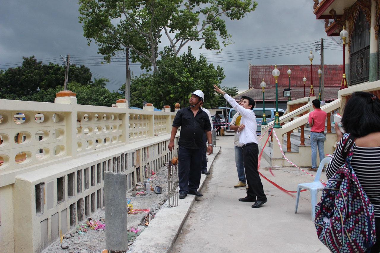 เมื่อวันที่ 27 ส.ค. 58 บรรยากาศการประชุมขั้นตอนการรื้อถอนที่วัดต้นเชือก ม.4 ต.บ้านใหม่ อ.บางใหญ่ จ.นนทบุรี พระครูเกษม จริยคุณ เจ้าอาวาสวัดต้นเชือก, นายประเสริฐ วัดผลัด นายกเทศบาลตำบลบางใหญ่, พ.ต.ท.บรรเทิง รุ่งมณี สวป.บางแม่นาง จ.นนทบุรี, นายวิชิต อรุณมานะกุล นายช่างใหญ่กรมโยธาธิการและผังเมือง, นายบรรเจิด เพชรรัตน์ วิศวกรโยธา เทศบาลตำบลบางใหญ่, นายจีระศักดิ์ วัฒนะสุวรรณ อดีตกำนัน ต.บางใหญ่ และคณะกรรมการวัดร่วม 30 คน ได้ร่วมประชุมหาทางออกในขั้นตอนการรื้อถอน โครงสร้างพระอุโบสถวัดต้นเชือกให้ปลอดภัย และมีระบบระเบียบ ตามแบบแผน โดยทางคณะกรรมการวัดลงความเห็นว่า ควรให้ทางเทศบาลบางใหญ่ พิจารณาเป็นแม่งานในการรื้อถอน ผ่านทางหน่วยงานโยธาของทางเทศบาล จะถูกขั้นตอนและปลอดภัยกว่าทางวัดที่จะรื้อถอนเอง เพราะตอนนี้ทางเทศบาลออกคำสั่งห้ามรื้อถอน ฉะนั้นจะต้องยื่นขอการรื้อถอนก่อน โดยมีบริษัทผู้รับเหมาที่ถูกต้องตามขั้นตอนในการรื้อถอน