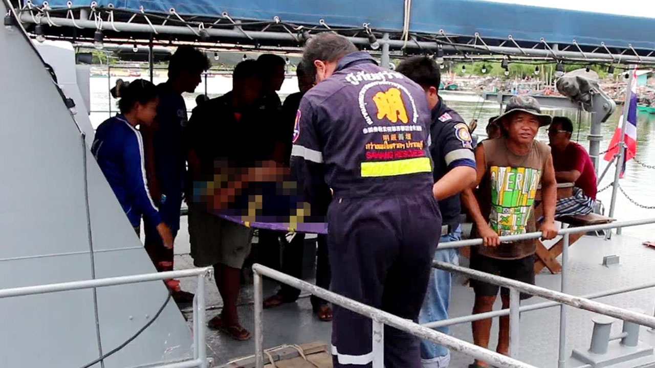เมื่อเวลา 12.30 น. วันที่ 28 ส.ค.58 ร.ต.ท.วีระศักดิ์ บัณฑิต พนักงานสอบสวน สภ.ปากน้ำปราณ รับแจ้งเหตุคนน็อกจมน้ำเสียชีวิต ขณะทำการประมงดำหอยจอบอยู่กลางทะเล บริเวณพื้นที่ ต.ปากน้ำปราณ อ.ปราณบุรี จ.ประจวบฯ ห่างจากฝั่งประมาณ 3 ไมล์ทะเล ชื่อเรือ ทรัพย์พิศาล ได้ช่วยกันนำร่างเข้าสู่ฝั่งที่ท่าเทียบเรือ ตำรวจน้ำปราณบุรี จึงเข้าทำการตรวจสอบ ทราบชื่อ นายสุขาเกิม ชาวกัมพูชา อายุประมาณ 30 ปี สวมเสื้อยืดสีดำ กางเกงขายาวสีน้ำเงิน ตามร่างกายไม่พบร่องรอยการถูกทำร้ายแต่อย่างใด