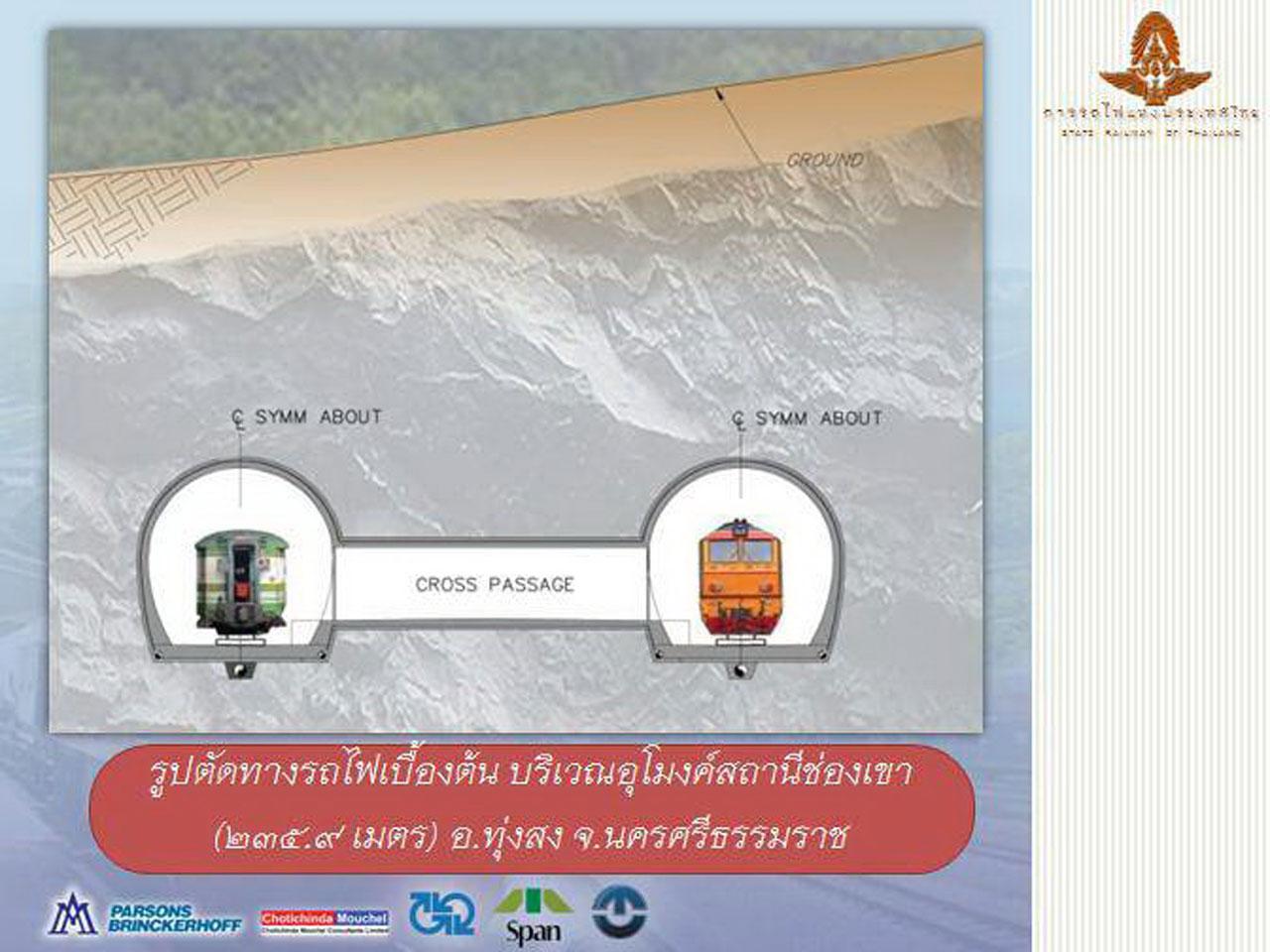 ส่วนการออกแบบทางรถไฟเบื้องต้น คือ ก่อสร้างทางรถไฟใหม่ 1 ทาง ในเขตทางเดิม 80 เมตร กำหนดความเร็วในการออกแบบไว้ที่ 160 กม./ชม. ก่อสร้างรั้วสองข้างทางรถไฟ เพื่อป้องกันอันตรายตลอดแนวทางรถไฟ ออกแบบจุดตัดทางรถไฟตลอดแนวเส้นทางโครงการเพื่อป้องกันอุบัติเหตุจากทางลักผ่าน และปรับปรุงสถานีให้เหมาะแก่การใช้งานและมีความทันสมัย โดยเฉพาะการแก้ไขปัญหาจุดตัดทางรถไฟจะมีการออกแบบให้เลือกหลายรูปแบบตามความสำคัญของพื้นที่และประโยชน์ที่จะได้รับ เช่น สะพานรถไฟข้ามถนน /สะพานรถยนต์ข้ามทางรถไฟ/ สะพานกลับรถรูปตัวยู (U) และตัวเอช (H) /ทางลอดทางรถไฟ และทางบริการข้างทางรถไฟ เป็นต้น โดยจะไม่มีการเวนคืนพื้นที่เพิ่มเติมแต่อย่างใด แต่จะสร้างในเขตทางรถไฟทั้งหมด ส่วนที่สถานีช่องเขา อ.ทุ่งสง จะมีการเจาะอุโมงค์ระยะทาง 235.9 เมตร