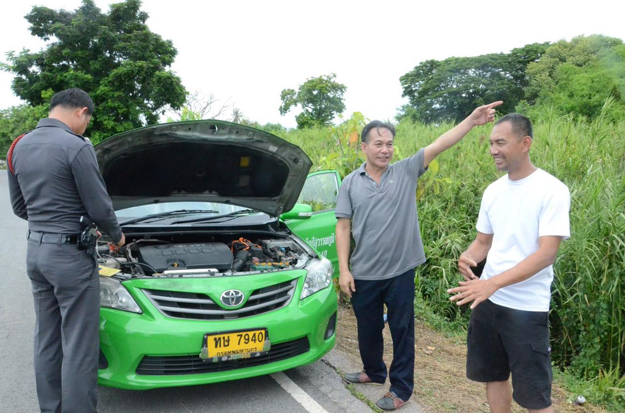 ด้านนายณรงค์ฤทธิ์ เพิ่มศรี เจ้าของรถ กล่าวว่า ก่อนเกิดเหตุรถคันดังกล่าว ตนได้ให้นายไพบูลย์ เปล่งปลื้ม อายุ 52 ปี ผู้เช่ากะดึกนำไปขับ จนกระทั่งตีห้าเศษ คนขับได้นำรถมาส่งให้คู่กะที่แถวแฟลตปลาทอง โดยมีกลุ่มคนขับแท็กซี่อยู่หลายคน และมีคนขับรถออกไป ครั้งแรกทุกคนคิดว่า เป็นเพื่อนแท็กซี่ด้วยกันขับออกไปหาซื้อของกิน แต่แล้วเวลาผ่านไปร่วม 1 ชั่วโมง ก็ยังไม่นำรถกลับมา ขณะที่เพื่อนๆคนขับแท็กซี่ทุกคนอยู่กันครบ จึงรู้ว่ารถถูกโจรกรรมตนจึงได้โทรศัพท์แจ้งไปยังบริษัท ให้ช่วยหาสัญญาณทาง GPS และตัดระบบเชื้อเพลิง จนกระทั่งทางบริษัทแจ้งมาว่า จับสัญญาณรถจอดอยู่ภายในวัดบัวหลวง เขตอ.สามโคก จ.ปทุมธานี จึงได้แจ้งตำรวจดังกล่าว.
