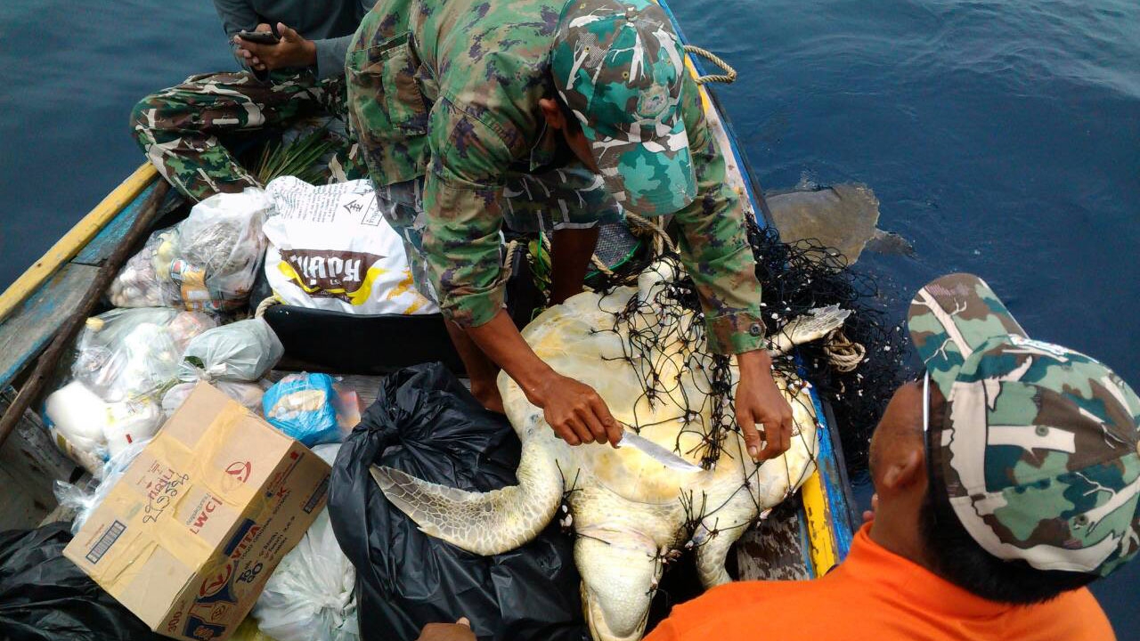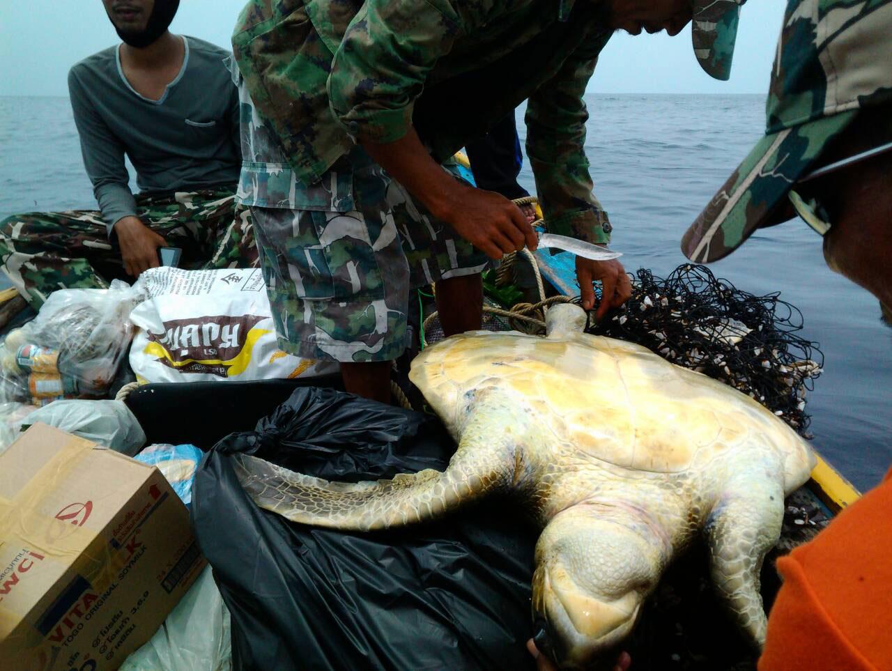ทั้งนี้ ระหว่างการเดินทางเจ้าหน้าที่ได้พบว่า มีเต่ากำลังติดอวนของเรือประมง จึงได้เข้าไปช่วยเหลือนำเต่าทั้ง 2 ตัว ขึ้นมาบนเรือ ก่อนที่จะทำการตัดอวนออกจากตัวเต่าปล่อยคืนสู่ทะเล และได้ตั้งชื่อให้ว่า ‘เจ้าบุญมี’ กับ ‘เจ้าบุญถึง’ ที่รอดตายจากการติดอวนเรือประมงในครั้งนี้ด้วย.