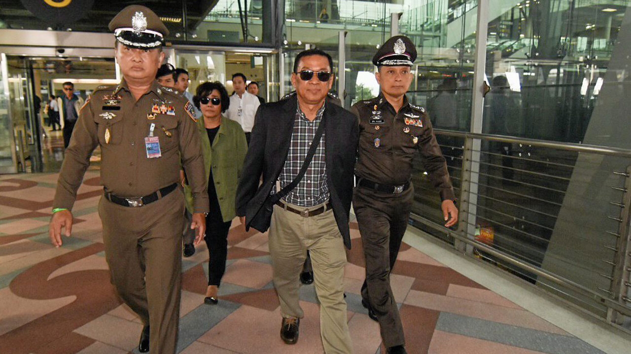 พล.ต.ท.สุวิระ ทรงเมตตา ผู้ช่วย ผบ.ตร.ไปรับตัว พล.ต.อธิวัฒน์ สุ่นปาน ที่ปรึกษา บ.ยูฟันฯ และนางจิราภิมณช์ สุ่นปาน ภรรยา สองผู้ต้องหาคดีแชร์ บ.ยูฟันฯ ที่สนามบินสุวรรณภูมิ อ้างถูกหลอกร่วมลงทุน ปัดบริหารยูฟัน.