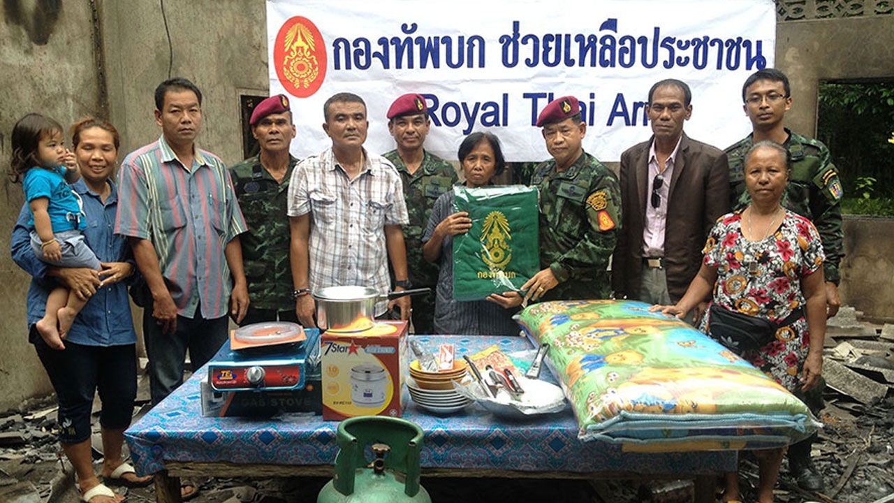 ทหารสิชล กำนัน ผู้ใหญ่บ้าน รุดช่วยเหลือหญิงเมืองคอน มอบข้าวของเครื่องใช้จำเป็น เตรียมจัดงานระดมเงินสร้างบ้านใหม่ หลังลูกชายเมาวางเพลิงบ้านเสียหายทั้งหลัง ด้านญาติปล่อยติดคุก หวังดัดนิสัย