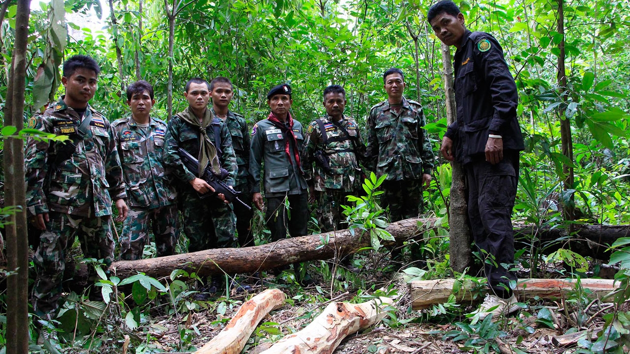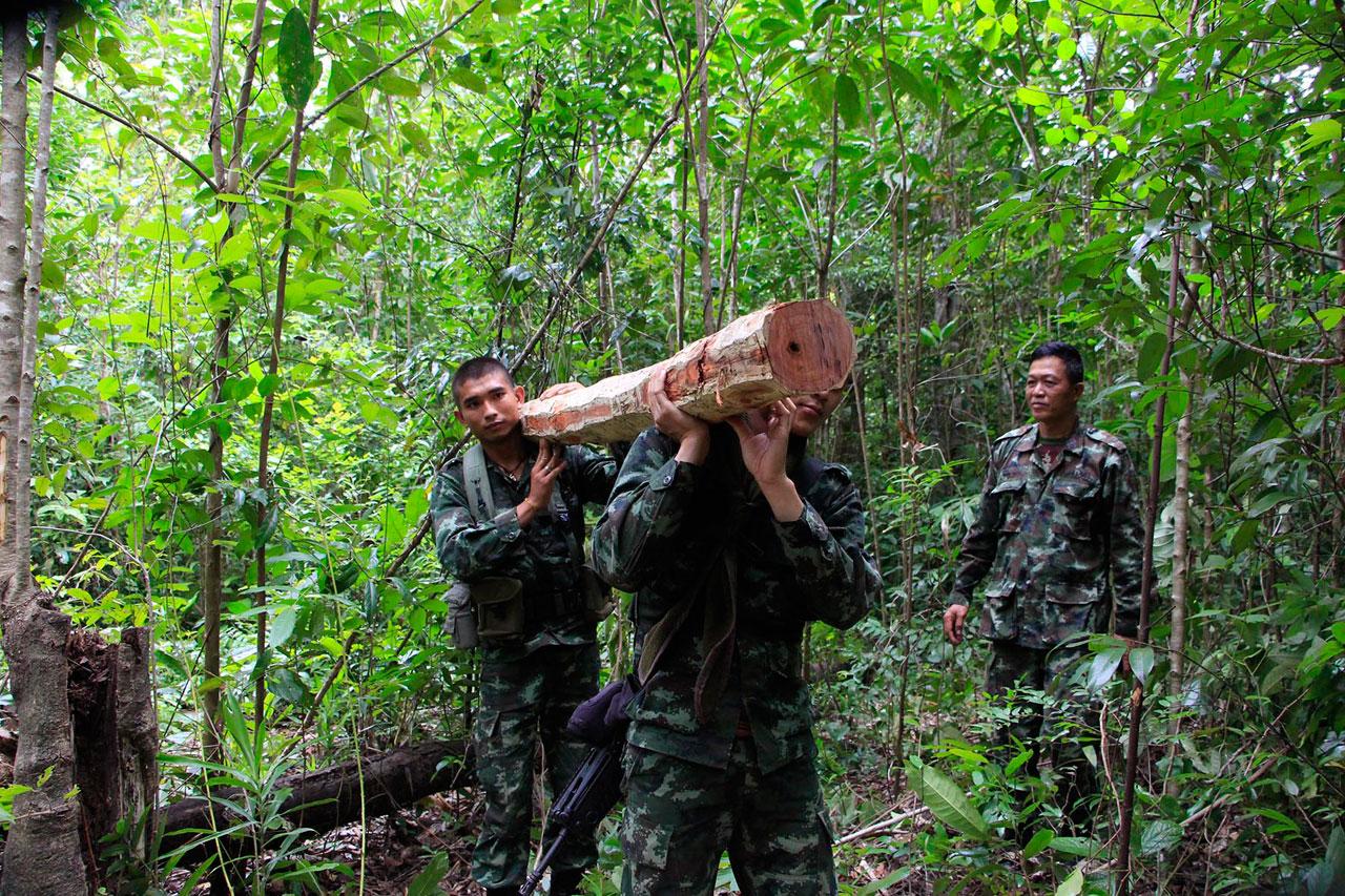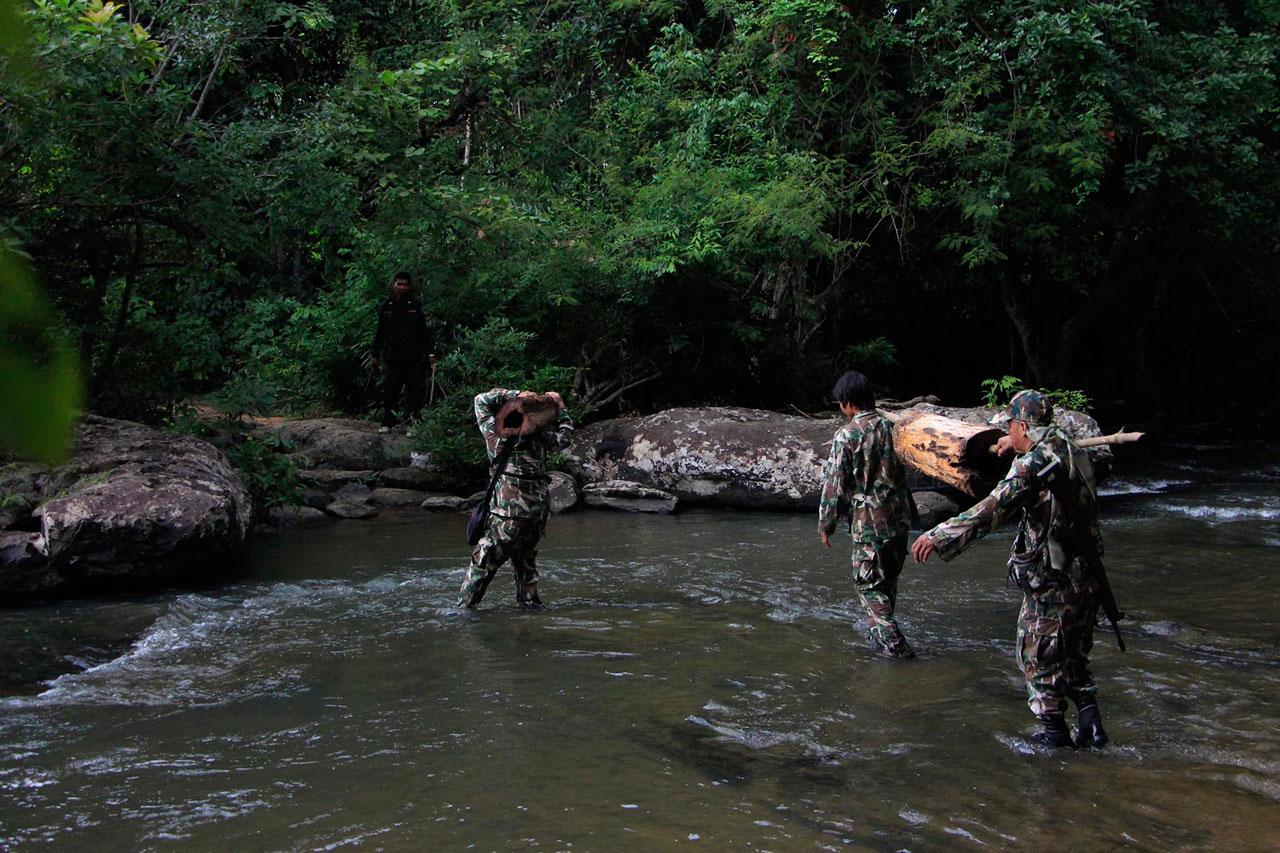 จนท.เขตรักษาป่าพันธุ์สัตว์ป่า พร้อมทหาร ตำรวจ ตรวจยึดไม้พะยูง 56 ท่อนค่ากว่า 7 ล้านบาท ที่กลุ่มค้าไม้ นำมาซุกซ่อนกลางป่าศรีสะเกษ ใต้ลำห้วย รอส่งขายนายทุน