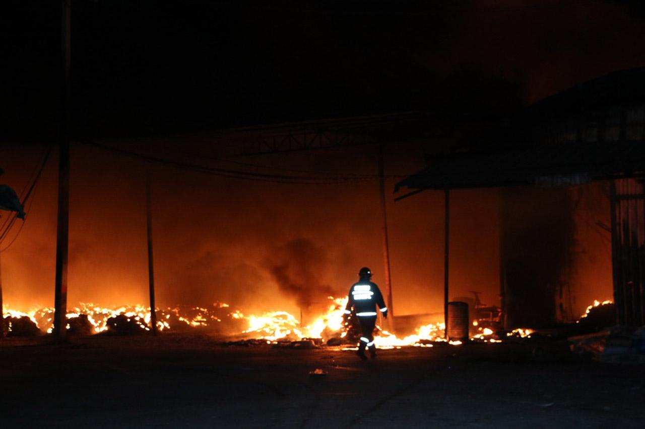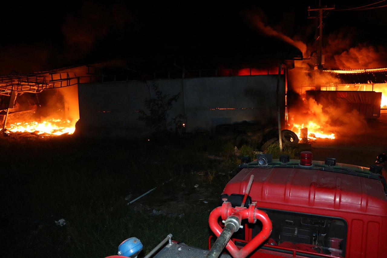 ที่เกิดเหตุ เป็นโรงงานรีไซเคิล อัดเม็ดพลาสติก และผลิตพลาสติก โฟม ขนาดพื้นที่กว่า 20 ไร่ โดยเพลิงได้ลุกไหม้โรงงานอย่างรวดเร็ว เนื่องจากมีพลาสติกและโฟมเป็นเชื้อเพลิงอย่างดี อีกทั้งยังมีลมกระโชกแรงตลอดเวลา ซึ่งมีอาคารจำนวน 7 หลัง ถูกเพลิงไหม้ ซึ่งเจ้าหน้าที่ยังไม่สามารถเข้าไปถึงพื้นที่เกิดเหตุได้ เนื่องจากขณะเกิดเหตุไม่มีคนอยู่ภายในโรงงาน ทำให้ประตูและเส้นทางต่างๆถูกปิดล็อกไว้ อีกทั้งยังมีแอ่งน้ำกั้น ทำให้ไม่สามารถข้ามไปได้