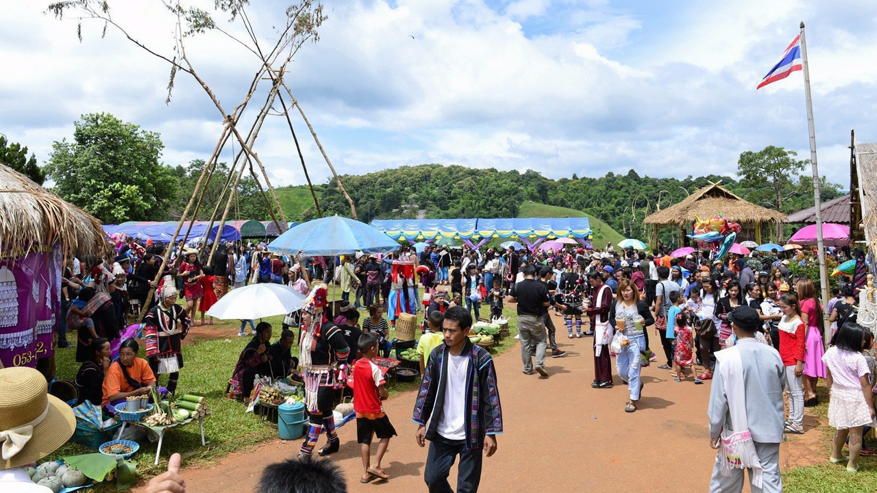 นายพรหมโชติ ไตรเวช รองอธิบดีกรมการท่องเที่ยว นายวรญาณ บุญณราช นอภ.แม่ฟ้าหลวง ร่วมกันทำพิธีเปิดงานเทศกาลโล้ชิงช้ากระทุ้งกระบอกไม้ไผ่ “บ่อ ฉ่อง ตุ๊” ประจำปี 58 ที่บริเวณลานพระสยามเทวาธิราช บ้านสามแยกอีก้อ ม.24 ต.แม่สลองใน อ.แม่ฟ้าหลวง จ.เชียงราย โดยมีชนเผ่าหมู่บ้านใกล้เคียง 6 ชนเผ่า เข้าร่วมงานการแสดงวิถีชีวิต วัฒนธรรมประเพณีปีใหม่โล้ชิงช้าอาข่า การแสดงรวมชนเผ่าเทิดพระเกียรติฯ การแสดงรำนก-รำโต ของชนเผ่าไทยใหญ่ การรำพัดชาวจีนยูนนาน การแสดงกระทุ้งกระบอกไม้ไผ่ชนเผ่าอาข่าจากหมู่บ้านต่างๆ และการแสดงศิลปวัฒนธรรมประเพณีวิถีชีวิตชนเผ่า ตลอดถึงภูมิปัญญาของแต่ละชนเผ่าให้ผู้ไปเที่ยวงานได้ชม”