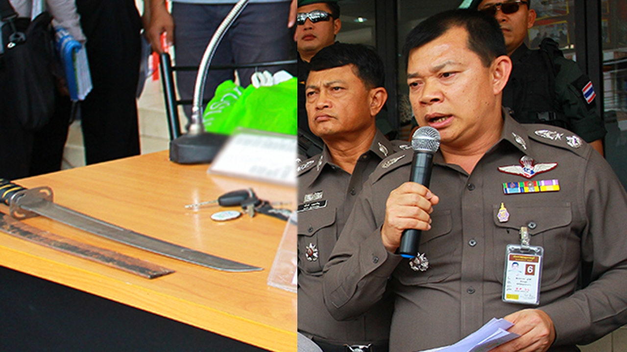 เมื่อเวลา 14.00 น. วันที่ 31 ส.ค.58 พล.ต.ต.ธนา ชูวงศ์ ผบก.ภ.จว.สมุทรปราการ พ.ต.อ.ต่อพงษ์ ตันตระวาณิชย์ ผกก.สภ.เมืองสมุทรปราการ พ.ต.ท.นพดล ช่างเรือน สว.สส.ฯ พร้อมด้วยชุดสืบสวน สภ.เมืองสมุทรปราการ ร่วมกันแถลงข่าวการจับกุม นายตี๋ (นามสมมติ) อายุ 19 ปี นายคิด (นามสมมติ) อายุ 18 ปี นายเป๋ (นามสมมติ) อายุ 19 ปี พร้อมด้วยเยาวชนจำนวน 3 คน และของกลาง รถยนต์กระบะยี่ห้อ อีซูซุ ดีแมคซ์ สีขาวหมายเลขทะเบียน 3 กก 3326 กทม. อาวุธมีด จำนวน 2 เล่ม ผู้ต้องหาร่วมกันพยายามฆ่าผู้อื่นมีอาวุธปืนและเครื่องกระสุนไว้ในความครอบครองโดยไม่ได้รับอนุญาต ร่วมกันพกอาวุธปืนเข้าไปในเมืองโดยไม่มีเหตุอันควร