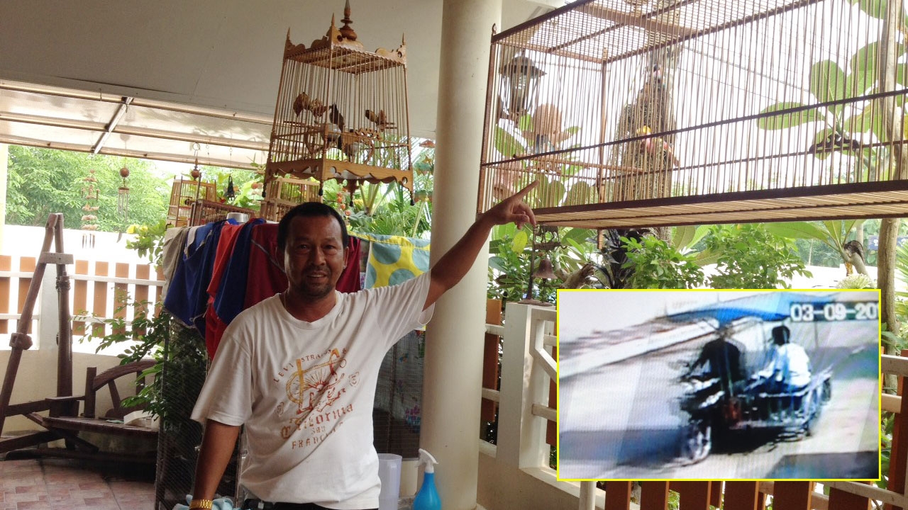 เมื่อเวลา 15.00 น. วันที่ 4 ก.ย. 58 ผู้สื่อข่าวได้รับแจ้งจาก นายชาติชาย ศรีช่วย อายุ 49 ปี อยู่บ้านเลขที่ 80/148 หมู่บ้านเอื้ออาทรบ้านเนินเขา หมู่ 4 ต.วัดประดู่ อ.เมืองจังหวัดสุราษฎร์ธานี รองประธานชมรมนกกรงหัวจุกสุราษฎร์ธานี ว่ามีแก๊งรถซาเล้งเข้ามาขโมยนกกรงหัวจุก มูลค่าหนึ่งแสนบาทไปจากบ้านตนเอง จึงเดินทางไปตรวจสอบ