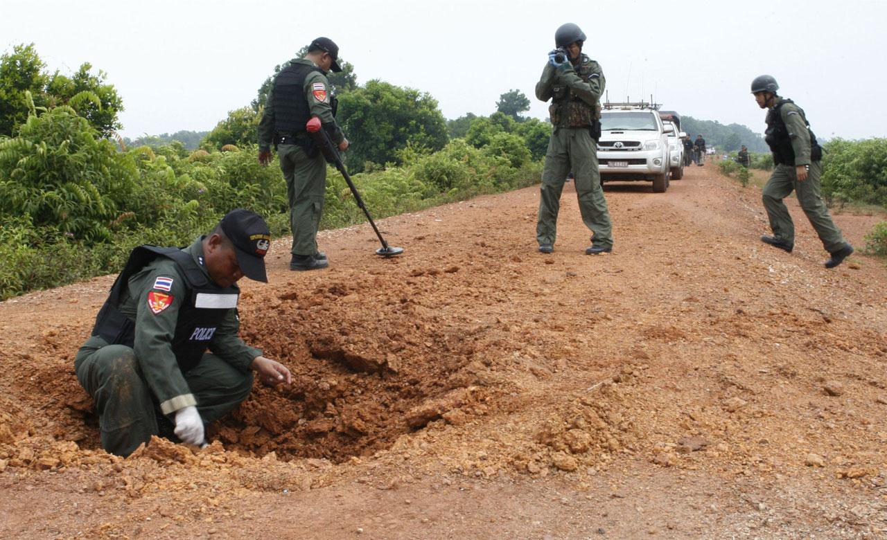 ในที่เกิดเหตุ พบหลุมระเบิดกลางถนนลึก 1 เมตร กว้าง 1 เมตร และมีเศษซากชิ้นส่วนของระเบิดแสวงเครื่องที่คนร้ายประกอบใส่ไว้ในถังแก๊สปิกนิก หนัก 25 กก. จุดชนวนด้วยวิทยุสื่อสาร ตกกระจายเกลื่อนพื้นถนน เจ้าหน้าที่ จึงเก็บรวบรวมไว้เป็นหลักฐาน นอกจากนี้ เจ้าหน้าที่ ยังพบวัตถุต้องสงสัยใส่กล่องพลาสติกและมีสายไฟโผล่ฝังอยู่ริมถนนห่างจากหลุมระเบิดไปประมาณ 50 เมตร เจ้าหน้าที่จึงใช้ปืนน้ำแรงดันสูง ยิงทำลาย พบว่าเป็นระเบิดปลอม ที่คนร้ายวางไว้เพื่อสร้างความปั่นป่วนให้กับเจ้าหน้าที่