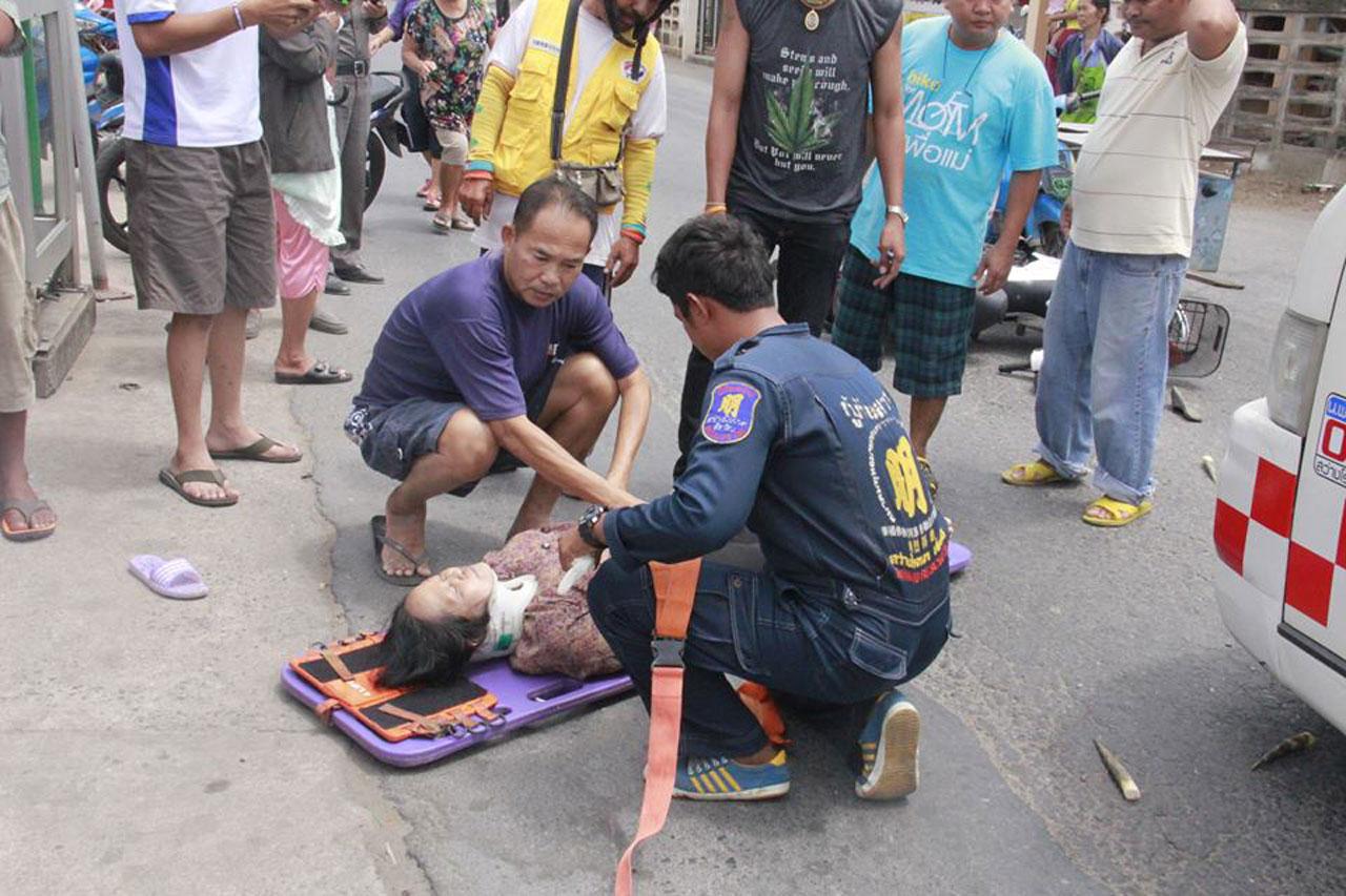 ที่เกิดเหตุเจ้าหน้าที่ได้ช่วยเหลือ นางฉลวย เปลื่องเจริญ อายุ 52 ปี นอนหมดสติอยู่กลางถนน ได้รับบาดเจ็บสาหัส นางประหยัด รอดโกมิล อายุ 58 ปี ปวดบริเวณชายโครงด้านขวา และ นางประเยาว์ หอยนิด อายุ 58 ปี ได้รับบาดเจ็บที่ขาขวาและแผลถลอกตามร่างกาย นอนอยู่บนท้องถนน จึงเข้าช่วยเหลือนำส่ง รพ.สมเด็จพระเจ้าสิริกิติ์ กรมแพทย์ทหารเรือ ใกล้กันพบรถจักรยานยนต์ฮอนด้า เวฟ 110 สีแดง ขาว จยร 647 ชลบุรี สภาพชนคาติดอยู่กับรถจักรยานยนต์ยามาฮ่า เฟส พ่วงข้าง สีน้ำเงิน งงย 17 ชลบุรี