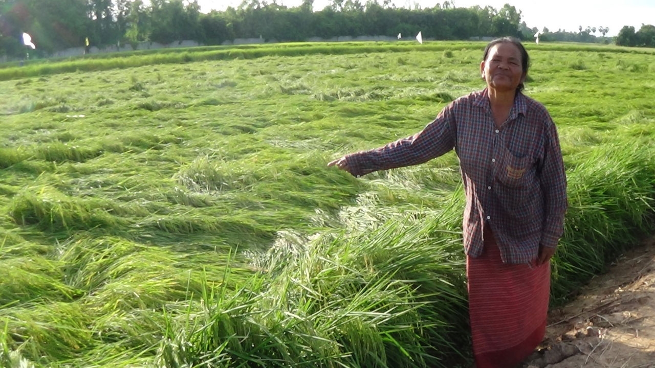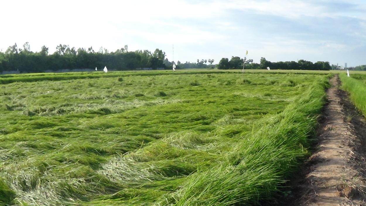เมื่อวันที่ 9 ก.ย. 58 นางสะอาด แย้มอำพล อายุ 65 ปี ชาวนาหมู่ 5 ตำบลชัยภูมิ อำเภอไชโย จังหวัดอ่างทอง เผยว่า หลังได้มีพายุฝนกระหน่ำตกในพื้นที่ติดต่อกันหลายวัน ทำให้ต้นข้าวอายุประมาณ 3 เดือน จำนวน 22 ไร่ ของตน ออกรวงเขียวขจี ถูกลมพายุพัดกระหน่ำ ทำให้ต้นข้าวล้มและจมน้ำเสียหาย ขณะที่ข้าวออกรวงใกล้จะเก็บเกี่ยว ตนก็ไม่รู้จะแก้ไขปัญหาดังกล่าวอย่างไร เบื้องต้นได้ตั้งท่อสูบน้ำออกแปลงนาข้าว จะทำให้ต้นข้าวที่ล้มทับกันเน่าเสียหายทั้งแปลง และตอนนี้เครียดมาก นอนไม่ค่อยหลับ อยากเร่งเก็บเกี่ยว แต่ข้าวยังเขียวอยู่ คงอีกหลายวันที่จะนำไปขายแต่ราคาข้าวก็ถูกอีก คงเหลือเพียงเงินใช้หนี้