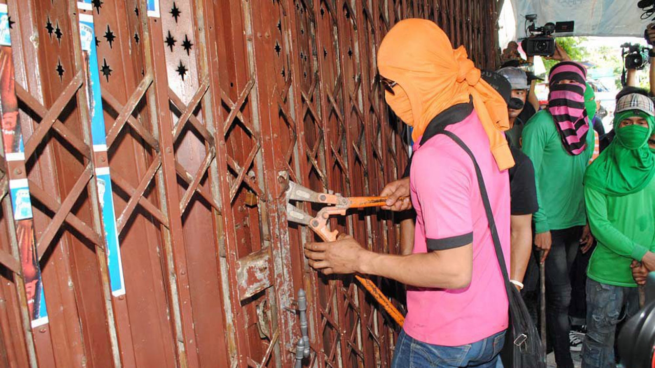 กระทั่งเวลาผ่านไป 1 ชม. ยังไม่มีผู้แสดงตัวว่าเป็นเจ้าบ้านหรือผู้พักอาศัยภายในบ้าน เจ้าหน้าที่จึงกระชับวงล้อมกันผู้ไม่เกี่ยวข้องออกจากหน้าบ้าน ในรัศมี 10 ม. ก่อนให้คนงานใช้คีมขนาดใหญ่ตัดแม่กุญแจทั้ง 2 ชั้น เปิดประตูเข้าไปสำรวจหาบุคคลและทรัพย์สิน ปรากฏว่าไม่พบผู้พักอาศัย มีเพียงข้าวของเครื่องใช้สำหรับประกอบอาชีพ อาทิ ถังแก๊ส ตู้แช่ของสด แผงไข่ ลังถึงนึ่งขนมจีบ ซุ้มตั้งร้าน ก่อนบันทึกตรวจยึดเอาไว้ เพื่อรอเจ้าบ้านนำเอกสารไปรับกลับจากกรมบังคับคดี