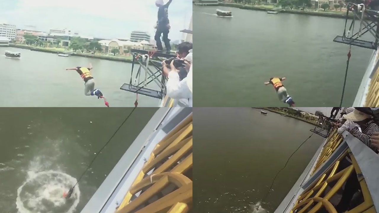 ทั้งนี้ ขณะที่ นายอนุสรณ์ สวมอุปกรณ์เป็นที่เรียบร้อยขณะกำลังปีนขึ้นไปเพื่อกระโดดลงมาทดสอบ ปรากฏว่า นายประสิทธิ์ ได้ผลักนายอนุสรณ์ ลงไปในน้ำและด้วยความที่เชือกยาวเกินมาตรฐาน ทำให้ใบหน้านายอนุสรณ์ กระแทกผิวน้ำจนได้รับบาดเจ็บเล็กน้อย ซึ่งทีมงานได้รีบนำส่ง รพ.เจ้าพระยา รักษาตัวจนหายดี อีกทั้งผู้จ้างวานได้ออกค่ารักษาพยาบาลและค่าเยียวยาให้จนพอใจ นายอนุสรณ์ จึงเดินทางมาลงบันทึกประจำวันไว้ว่าไม่ประสงค์ดำเนินคดีกับผู้ใดตามวันและเวลาดังกล่าว