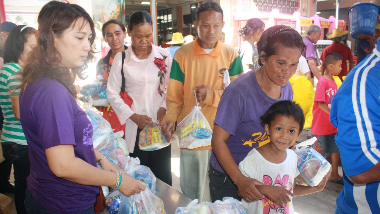 มูลนิธิสว่างจรรยาธรรมสถานบุรีรัมย์ ร่วมผู้มีจิตศรัทธา จัดงานทิ้งกระจาดปีที่ 54 แจกทานผู้ยากไร้กว่า 7,000 คน แห่รับสิ่งของบริจาคเนืองแน่น หวังบรรเทาทุกข์ พร้อมอุทิศส่วนกุศลบรรพบุรุษล่วงลับ - ศพไร้ญาติ