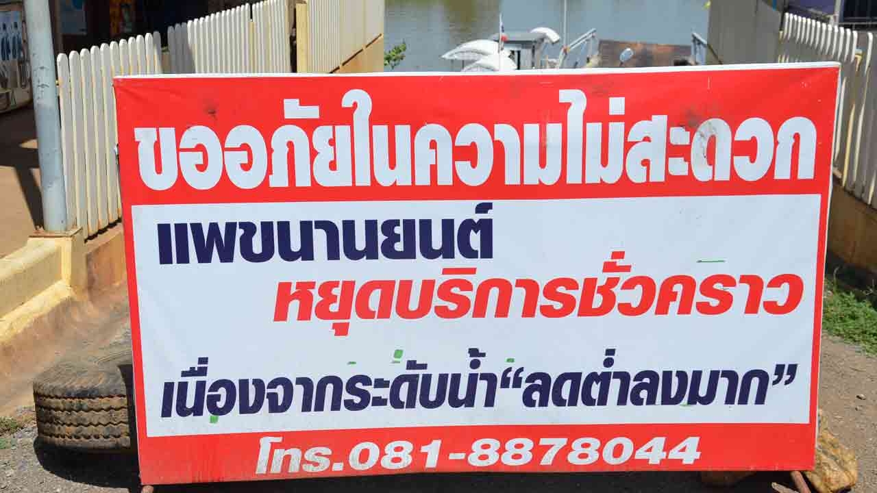 "น้ำที่อยู่ช่วงสันทรายนั้นสูงเพียง 60 เซ็นติเมตรจากสันทราย แต่แพขนานยนต์ จะจอดเทียบท่าได้ต้องมีระดับน้ำอย่างน้อย 1.60 เมตร จึงจะเทียบท่าได้ ขณะนี้จึงมีเพียงเรือรับจ้างของผู้ประกอบการ ที่บรรทุกได้เฉพาะรถจักรยานยนต์และผู้คนเท่านั้นที่ข้ามได้ แต่หากระดับน้ำยังลดลงต่อไปเรื่อยๆ และฝนยังไม่ตกลงมาตามฤดูกาล หรือตกน้อยกว่าการคาดการณ์ คาดว่าอีกไม่เกิน 1 อาทิตย์ เรือข้ามฝากขนาดเล็กนี้ก็ไม่สามารถข้ามไปได้เช่นกัน" คนขับแพกล่าว.