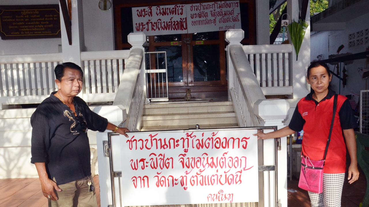 เมื่อเวลา 17.00 น. วันที่ 13 ก.ย. ได้มีกลุ่มชาวในทู หรือ ชาวกะทู้ ต.กะทู้ อ.กะทู้ จ.ภูเก็ต ชาย-หญิง นับสิบคน ปิดล้อมกุฏิพระครูโกวิทนัยสารหรือหลวงพ่อเชย เจ้าอาวาสวัดกะทู้ ถ.วิชิตสงคราม ต.กะทู้ อ.กะทู้ ซึ่งเป็นที่จำวัดของพระพิชิต ผู้ช่วยเจ้าอาวาสวัดกะทู้ พร้อมทั้งนำป้ายผ้าเขียนข้อความขับไล่ นำมาติดไว้ที่ทางเข้ากุฏิ