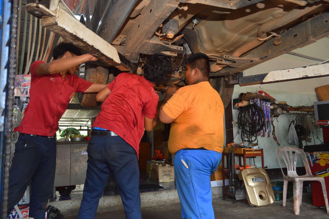 ขณะที่ น้องเปา กล่าวว่า สำหรับวันหยุด ก็มาทำงานรับจ้างทำงานอยู่ อู่ซ่อมรถของช่างน้อย เพื่อจะเก็บเงินไปจุนเจือครอบครัว อีกส่วนหนึ่งก็ไว้ไปต่อที่วิทยาลัยอาชีพวังน้ำเย็นในสาขาเครื่องยนต์เพราะชอบในด้านนี้ สำหรับค่าจ้างที่ได้รับนั้น น้องเปาบอกว่า ได้วันละ 150 บาท ส่วนถ้าทำเต็มวันเสาร์-อาทิตย์ อยู่กินกับอู่เลย ถึงแม้จะเป็นเงินน้อยนิด แต่ก็ภูมิใจที่ได้ช่วยเหลือครอบครัวและยังมีวิชาชีพติดตัวอีกด้วย