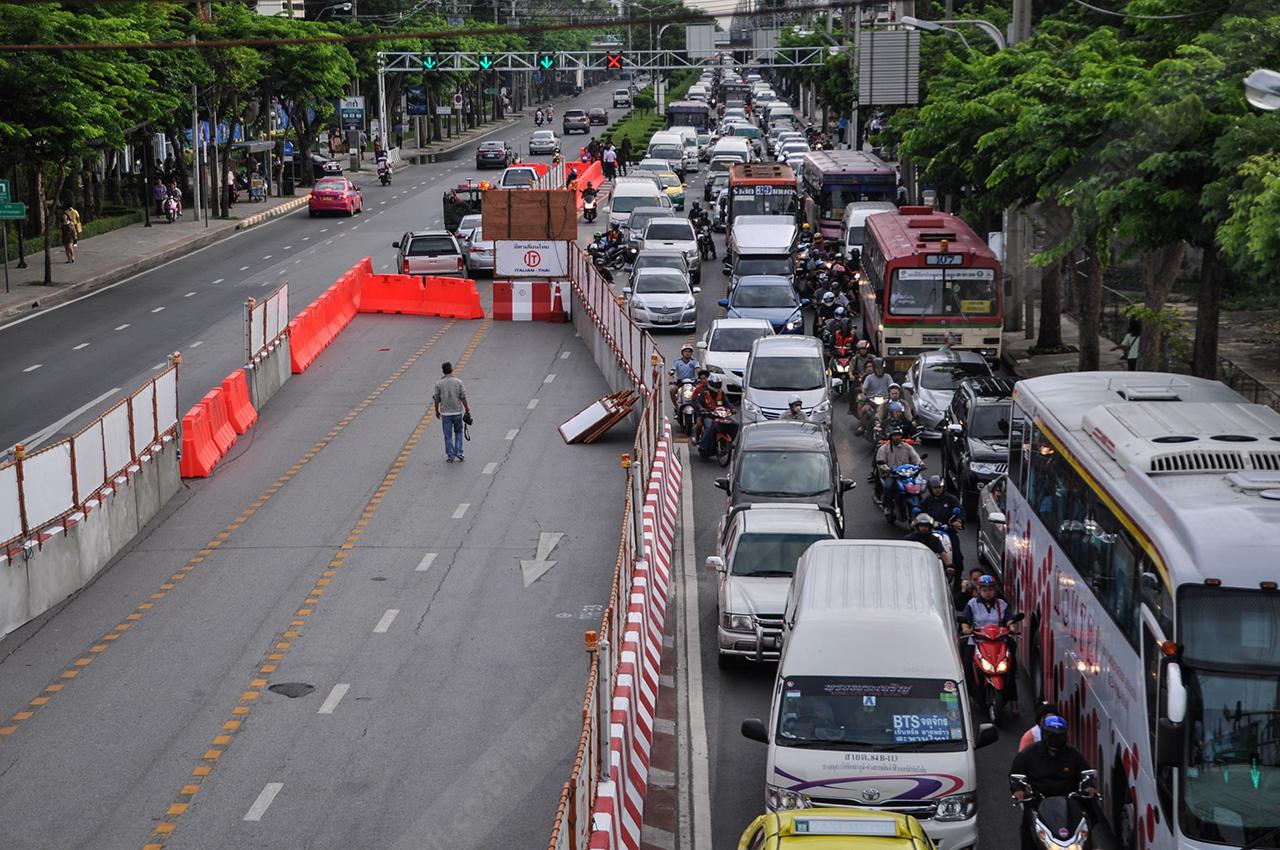 พ.ต.อ.เอกรักษ์ ลิ้มสังกาศ รองผู้บังคับการตำรวจจราจร กล่าวกับทีมข่าวฯ ว่า ปกติถนนเส้นนี้รถจะติดเวลาประมาณ 07.00 น. แต่เมื่อปิดะพานข้ามแยกไป รถเริ่มสะสมตั้งแต่ 06.30 น. แต่เป็นไปตามที่คาดหมายไว้ คิดว่าหากถึงเวลา 08.00 น. ท้ายแถวน่าจะไปถึงช่วงวงเวียนบางเขน ตอนนี้ตำรวจจราจรพยายามเร่งระบายรถ โดยให้สัญญาณไฟเขียวกับถนนพหลโยธินช่วงขาเข้ามากเป็นพิเศษ แต่ประเด็นสำคัญอยู่ที่ห้าแยกลาดพร้าว ถ้าปลายทางระบายรถได้เร็วหรือไม่มีปัญหารถติดสะสม การระบายรถจากถนนพหลโยธินก็ทำได้โดยสะดวก ส่วนอีกหนึ่งปัจจัยที่ทำให้รถติดคือ ช่องทางการจราจรหายไปหนึ่งช่องทาง