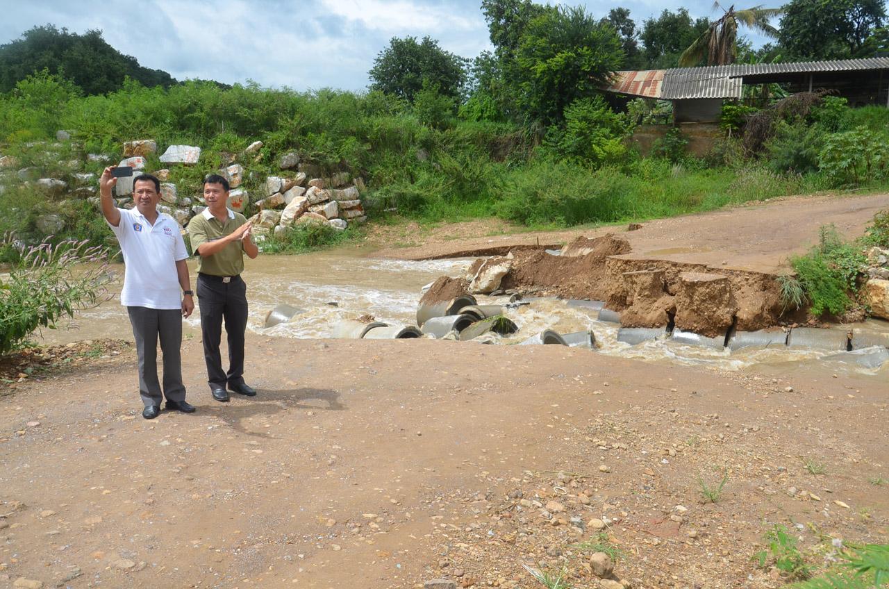 ทั้งนี้ ถนนดังกล่าวเป็นเส้นถนนทางลัดระหว่างบ้านนิคมสร้างต้นเอง-หมู่บ้านหนองยาง ซึ่งมีการซ่อมแซมถนนไว้ชั่วคราว โดยการนำท่อปูนมาวางให้น้ำผ่านพร้อมอัดดินทับบนท่อ โดยมีการสร้างอยู่ข้างสะพานปูนอันเก่าที่ขาดลง