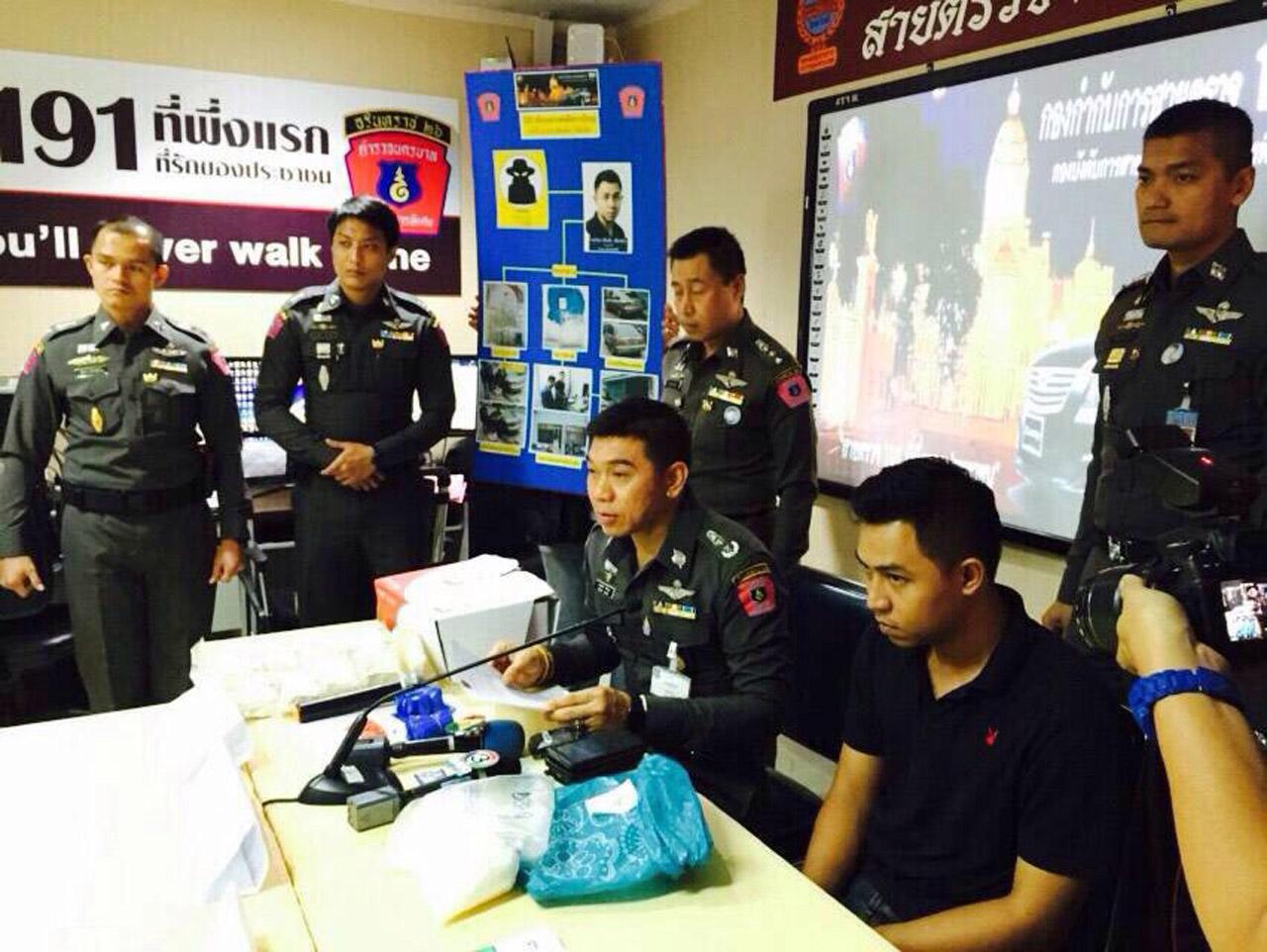 ผบก.สปพ.แถลงข่าวจับกุม "ตั้ม เพ็ชรรัตน์" ยึดของกลางยาบ้า 20,000 เม็ด พร้อมยาไอซ์ 1 กิโลกรัม สารภาพรับจ้างส่งยาเสพติดมาแล้ว 3 ปี ได้เงินค่าส่งของตั้งแต่ 10,000-500,000 บาท