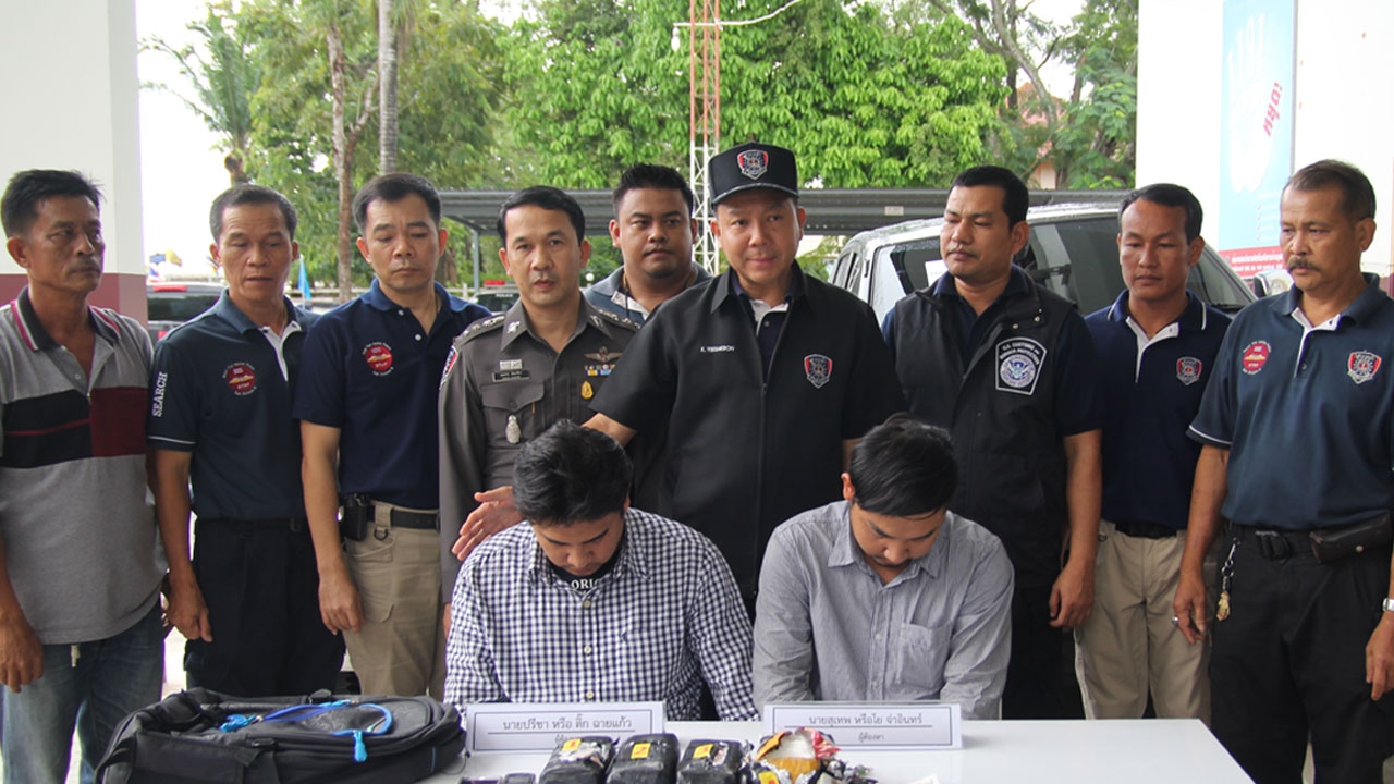 เมื่อวันที่ 16 ก.ย. 58 พล.ต.ต.กฤตธาพล ยี่สาคร ผบก.รน. พ.ต.อ.ธนพล ศรีโสภา รอง ผบก.รน. พ.ต.อ.สมชาย จันทร์คง ผกก.6 บก.รน. สุราษฎร์ธานี พ.ต.ท.สิงหา ควรบำรุง สว.ส.รน.6 สุราษฎร์ธานี นายวีรวัฒน์ เต็งอำนวย ผอ.ปปส.ภ.8 พร้อมเจ้าหน้าที่ชุดปราบปรามยาเสพติด กองกำกับการ 6 กองบังคับการตำรวจน้ำ สุราษฎร์ธานี ร่วมแถลงข่าวจับกุม นายปรีชา ฉายแก้ว อายุ 35 ปี กำนันตำบลธรรมเสน อยู่บ้านเลขที่ 75/2 หมู่ 7 ต.ธรรมเสน อ.โพธาราม จ.ราชบุรี และ นายสุเทพ จ่าอินทร์ อายุ 31 ปี อยู่บ้านเลขที่ 68/4 ต.ขลุง อ.บ้านโป่ง จ.ราชบุรี พร้อมของกลาง ยาไอซ์ 4 ห่อ น้ำหนักรวม 2 กิโลกรัม เงินสด 150,000 บาท รถยนต์ฮอนด้า แอคคอร์ด สีขาว หมายเลขทะเบียน 2 กล 1465 กทม. รถกระบะโตโยต้า วีโก้ สีดำ หมายเลขทะเบียน ฌภ 6167 กทม. พร้อมโทรศัพท์มือถือ 2 เครื่อง มูลค่ากว่า 6 ล้านบาท