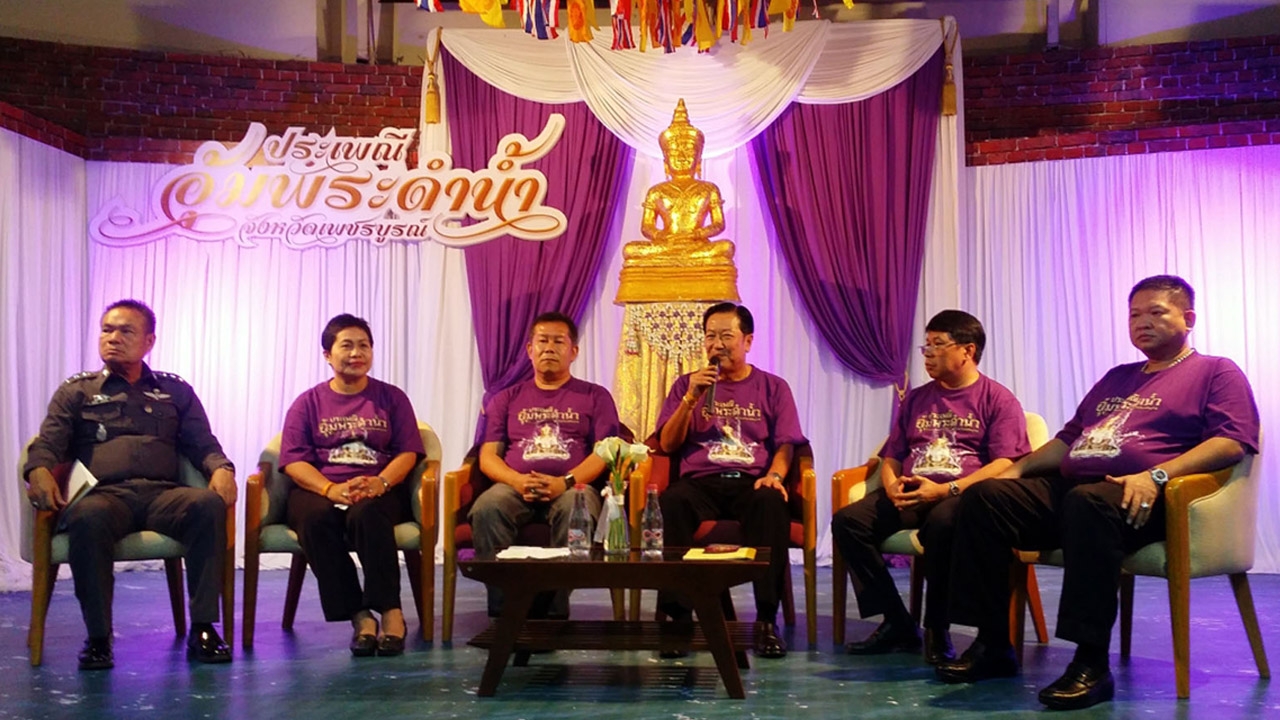 วันที่ 16 ก.ย. 58 นายบัณฑิต เทวีทิวารักษ์ ผู้ว่าราชการจังหวัดเพชรบูรณ์ นายอัครเดช ทองใจสด นายก อบจ.เพชรบูรณ์ นางจิรารัตน์ มีงาม ผอ.ททท.พิษณุโลก นายสอน คำปลอด ผู้ประสานงานเครือข่ายองค์กรงดเหล้าภาคเหนือตอนล่าง นายเสกสรร นิยมเพ็ง นายกเทศมนตรีเมืองเพชรบูรณ์ พ.ต.อ.สมนึก คำวิเศษ ผกก.สภ.เมืองเพชรบูรณ์ แถลงข่าวการจัดงานประเพณีอุ้มพระดำน้ำหนึ่งเดียวในโลกของ จ.เพชรบูรณ์ ประจำปี 2558
