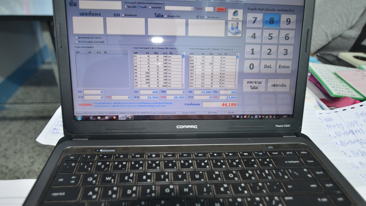 เมื่อเวลา 17.00 น. วันที่ 16 ก.ย. 58 นายธนนท์ พรรพีภาส นายอำเภอปะทิว จ.ชุมพร นายกิตติพงค์ โสมณะ ปลัดอำเภอปะทิว ฝ่ายความมั่นคง พร้อมกำลัง อส. ควบคุมตัวผู้ต้องหาขายหวยใต้ดิน จำนวน 8 คน ประกอบด้วย นางบรรจง คงคุลี, นางจิตรา ยศแก้ว, นางธิดารัตน์ วิเศษศักดิ์, นางจินดา พันธคาร, นายปริเวศ คงคุลี, นางกัญญา แก้วยอด, นางเบญจา ศิริเมร์ และนายปริญญากร สุวรรศาสตร์ พร้อมของกลางสมุดบันทึกหมายเลขหวยใต้ดิน 13 เล่ม สมุดจดบัญชียอดเงิน และอุปกรณ์เครื่องมือที่ใช้เกี่ยวกับการขายหวยใต้ดินอีกหลายรายการ และสมุดบันทึกรายชื่อ อ้างการจ่ายเงินให้กับเจ้าหน้าที่หน่วยงานทั้งในจังหวัดและส่วนกลางอีกเกือบ 10 หน่วยงาน