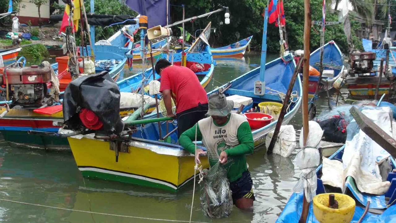 ในขณะที่บริเวณชายฝั่งสภาพคลื่นลมสงบ ชาวประมงบางส่วนได้นำเรือออกวางอวนจับสัตว์น้ำตามชายฝั่งเพื่อหารายได้เลี้ยงครอบครัว ถึงแม้ว่าจะจับสัตว์น้ำได้น้อย แต่ดีกว่าไม่มีรายได้เข้ามาเลย เนื่องจากครอบครัวมีภาระที่ต้องใช้จ่ายทุกวันบุตรหลานต้องไปโรงเรียน จึงต้องหารายได้มาจุนเจือครอบครัว รวมทั้งใช้เวลาว่างนำอวนที่ขาดจากการจับปลามาซ่อมแซมเพื่อให้พร้อมใช้งานหากสามารถออกเรือได้