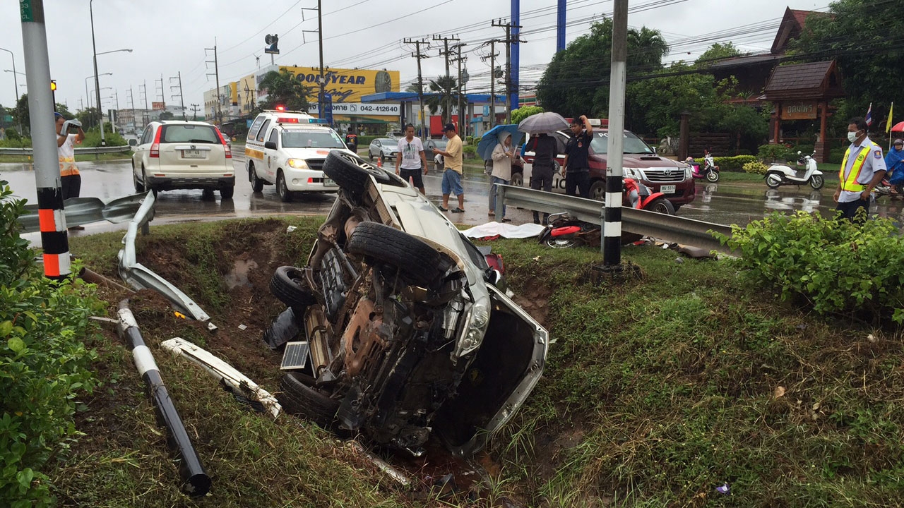 เมื่อวันที่ 18 ก.ย. 58 พ.ต.ท.ไตรเทพ ไตรยางค์ พนักงานสอบสวน สภ.เมืองหนองคาย ได้รับแจ้งเกิดอุบัติเหตุรถเก๋งชนรถจักรยานยนต์มีผู้เสียชีวิต บริเวณจุดกลับบ้านเยื้องปั๊มน้ำมัน ปตท. ถนนมิตรภาพ หนองคาย–อุดรธานี จึงไปตรวจสอบพร้อมด้วยนพ.ศักดิ์ชัย เกียรติอำนวย แพทย์เวรโรงพยาบาลหนองคาย และมูลนิธิสว่างคงคาธรรมสถาน