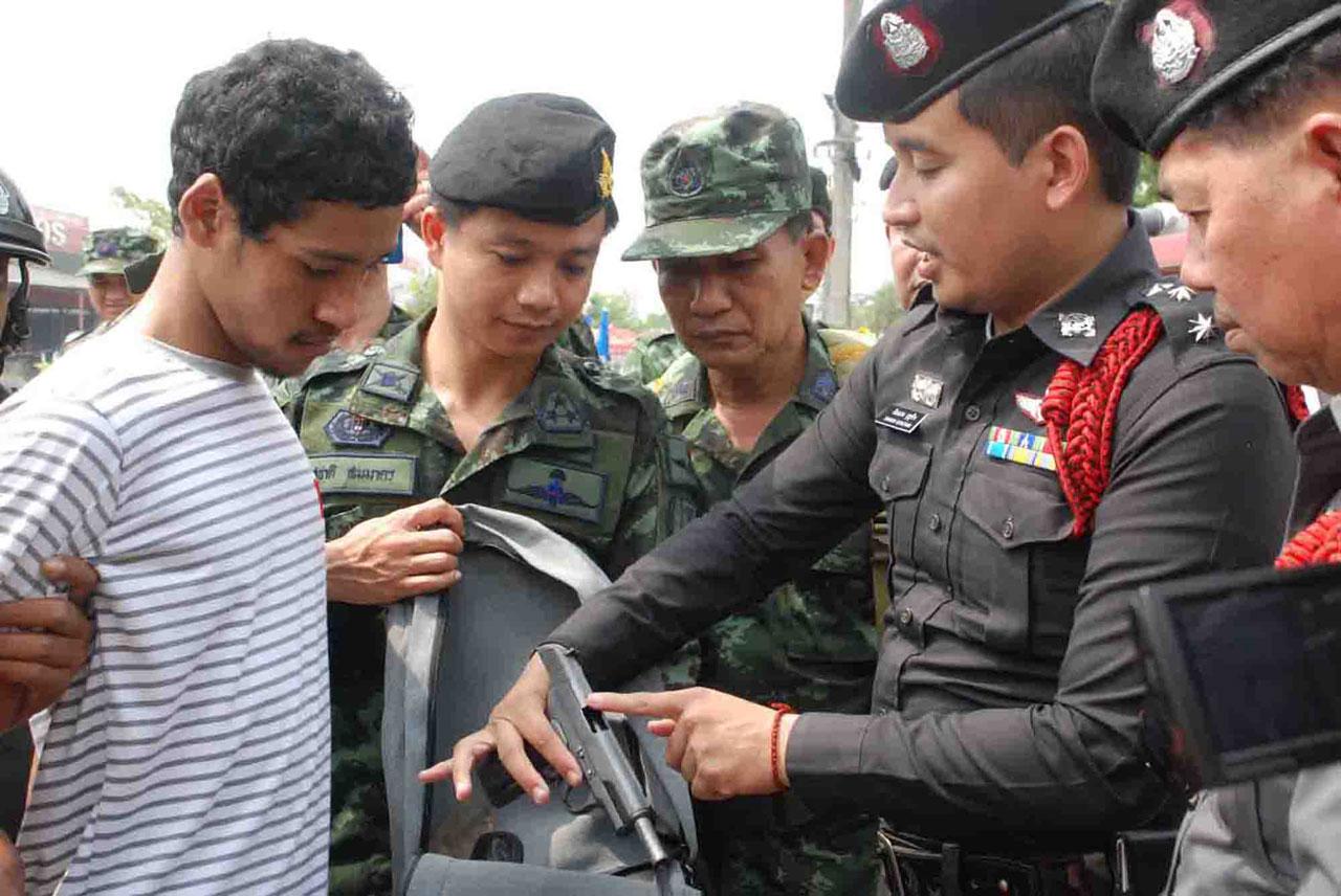 เมื่อเวลา 10.30 น. วันที่ 18 ก.ย. 58 ที่ด่านความมั่นคง หน้าเมโทรเคท ถนนกาญจนวนิช หมู่ 7 ต.คอหงส์ อ.หาดใหญ่ จ.สงขลา พล.ต.ต.อำพล บัวรับพร ผบก.ภ.จ.สงขลา พร้อมด้วย พ.ต.อ.ศักดา เจริญกุล ผกก.สส.ภ.จ.สงขลา และ พ.ต.อ.พงษ์พันธ์ จันทรอาภา ผกก.สภ.คอหงส์ ร่วมกันจับกุมนายสมพร พลสังข์ อายุ 21 ปี อยู่บ้านเลขที่ 8 หมู่ 3 ถนนประยูรพัฒนา ซอย 3 ต.บ้านนา อ.จะนะ จ.สงขลา ขณะขับรถยนต์กระบะอีซูซุ สีดำ ทะเบียน ผค 6403 สงขลา มีอาวุธปืนพกสั้น 4 กระบอก พร้อมเครื่องกระสุนปืนจำนวนมาก
