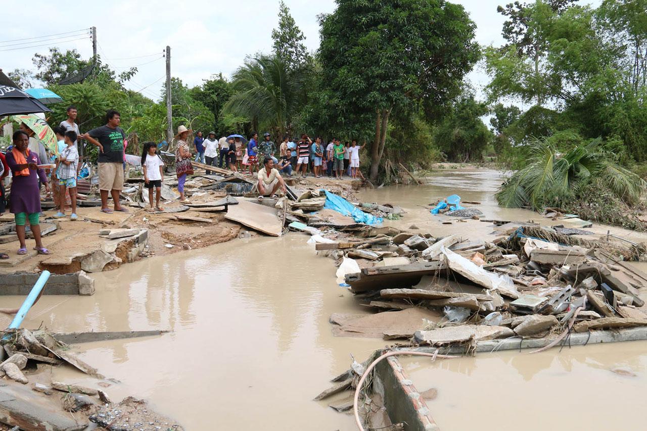 ด้าน นางสมพร ม่วงไหมทอง ผู้ใหญ่บ้านหมู่ 2 กล่าวว่า ตนอยู่ขณะเกิดเหตุ ซึ่งเป็นช่วงที่มีฝนตกหนัก และน้ำเชี่ยวกรากไหลหลากผ่านเส้นทางน้ำ และเอ่อล้นขึ้นมาท่วมสวน ของผู้สูญหาย ในเวลานั้นทุกคนต่างพากันวิ่งหนีเอาชีวิตรอด แต่ผู้สูญหายกลับเดินลุยน้ำ เพื่อไปเอาสายยาง ทำให้ถูกกระแสน้ำพัดไปติดกอไผ่ ก่อนถูกท่อนไม้ขนาดใหญ่ ซัดโหมเข้าใส่ตัวอย่างจัง จนมือหลุดล่องลอยจมไปกับสายน้ำ ต่อหน้าต่อตา ทุกคนทำได้เพียงร้องเรียก และหวังว่า จะมีชีวิตรอดปลอดภัย จากนั้นไม่นาน นางประทวย ประยูร อายุ 55 ปี ภรรยา เมื่อรู้ข่าวต้องถึงกับเป็นลมล้มพับ ในเวลานี้ทุกคนในหมู่บ้านทำใจเพียงขอให้พบร่าง นำขึ้นมาบำเพ็ญกุศลตามศาสนา เท่านั้น