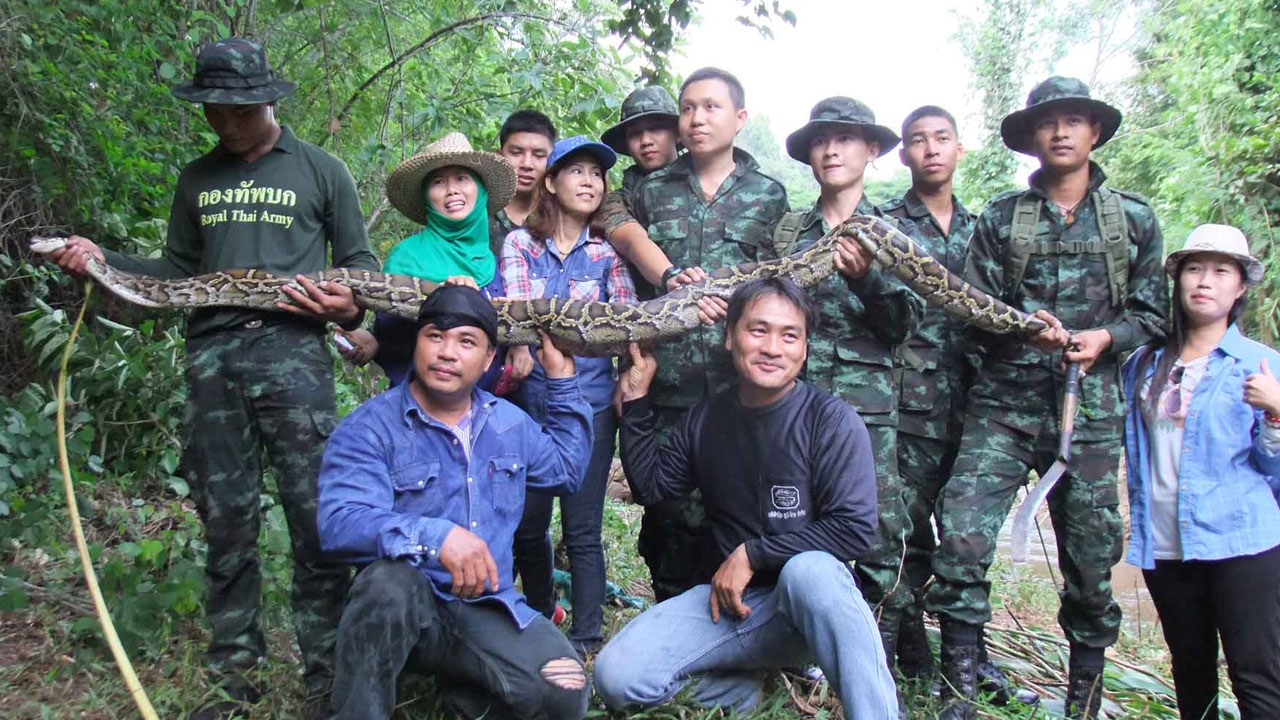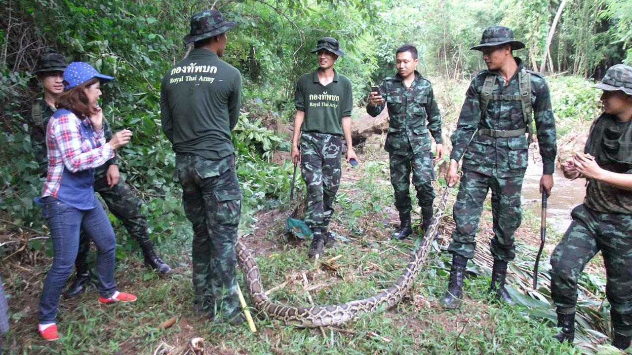ทหารที่ จ.แพร่ เปลี่ยนจากจับปืนมาจับงูหลามยักษ์ตัวใหญ่ยาวกว่า 4 เมตร เข้าไปซุกอยู่ในเล้าไก่รอเขมือบเป็นอาหาร ชาวบ้านบอกมีตัวลึกลับมากินไก่ไปแล้วหลายตัว สงสัยอยู่เหมือนกันว่าจะเป็นงู สุดท้ายก็ใช่จริงๆ แต่เป็นงูยักษ์ยาวกว่า 4 เมตร