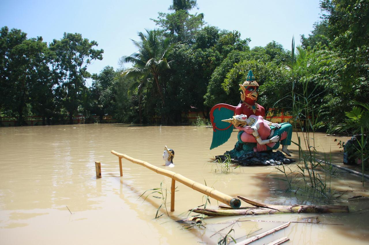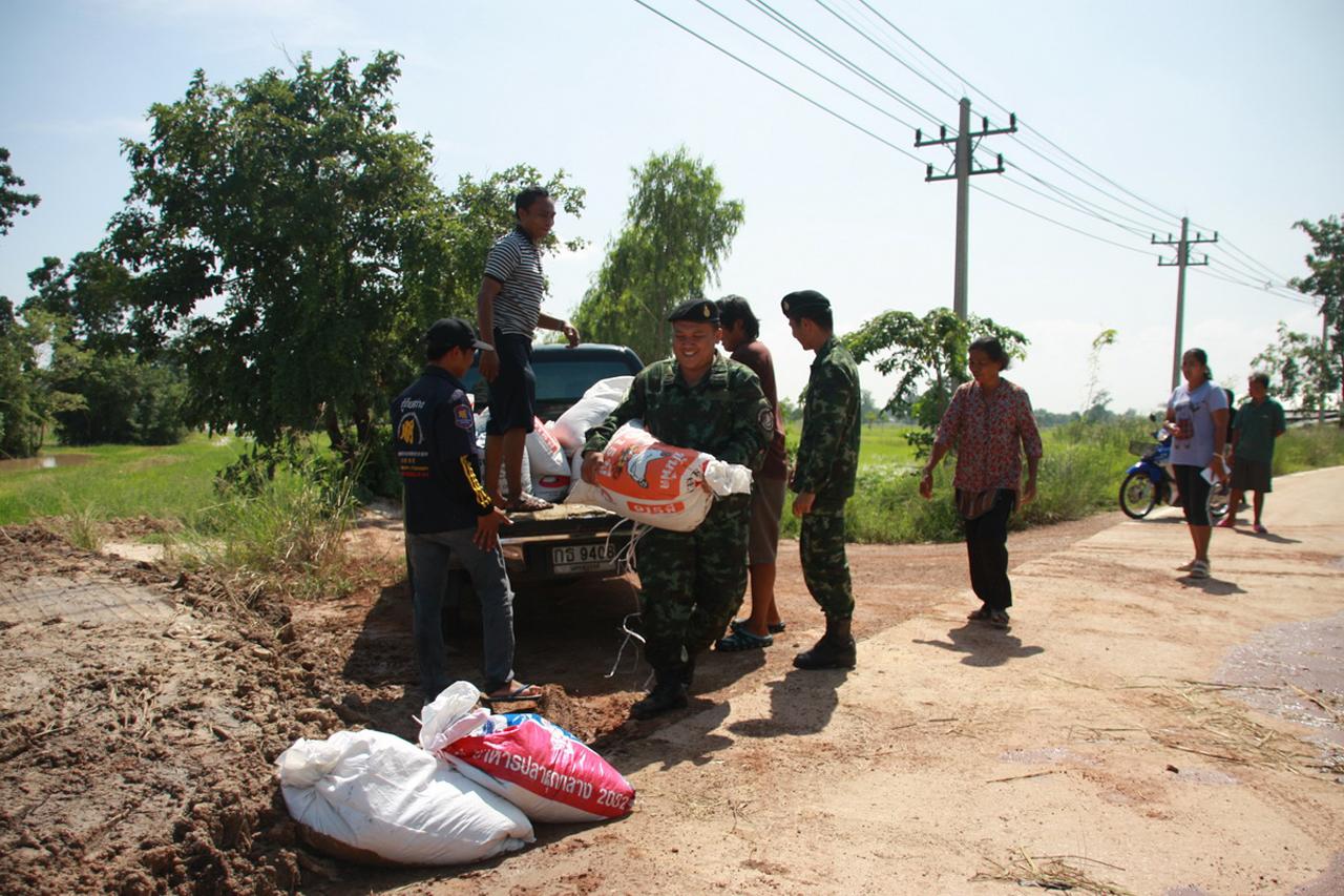 ทั้งนี้ น้ำที่ไหลหลากมาอย่างรวดเร็ว ทำให้สัตว์มีพิษเช่นลูกงูเห่าไหลมาตามน้ำเต็มไปหมด และยังมีจำพวกงูสิงห์ที่ออกมาถูกชาวบ้านตีตายอยู่กลางถนนด้วย ในส่วนของชาวนาที่อยู่อีกด้านของถนนที่น้ำกำลังจะข้ามถนนไปท่วมนาซึ่งมีต้นข้าวอายุประมาณ 2 เดือนอยู่เต็มทุ่ง ต้องไปซื้อกระสอบมากรอกทรายโดยมีเจ้าหน้าที่ทหารช่วยขนไปกั้นถนนไม่ให้น้ำไหลเข้าไป และจากการสังเกตดูพบว่าทุ่งนาฝั่งที่ถูกน้ำท่วมกลายเป็นทะเลไปแล้ว และยังจะมีมวลน้ำไหลมาสมทบอีก คาดว่ากว่าน้ำจะลดลงก็ต้องกินเวลาไม่ต่ำกว่า 5 วัน ซึ่งนาข้าวและพืชสวนที่จมน้ำต้องเสียหายแน่นอน.