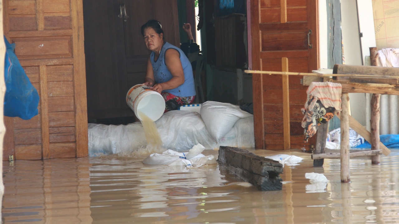 โดยตั้งแต่เมื่อวานที่ผ่านมาน้ำได้เริ่มไหลเข้าท่วม จนถึงวันนี้เวลาประมาณเที่ยงน้ำก็ทะลักเข้าท่วมอย่างรวดเร็ว ถนนในเขต ม.5 ระดับน้ำขึ้นสูงกว่า 50 เซนติเมตรและไหลเชี่ยว รถเล็กไม่สามารถผ่านไปมาได้ บ้าน 2 ข้างทาง ซึ่งไม่ได้ยกสูงถูกน้ำท่วมหลายสิบหลังคาเรือน ส่วนบ้านที่ยกสูงต้องใช้กระสอบทรายมากั้นหน้าบ้านกันน้ำเข้า