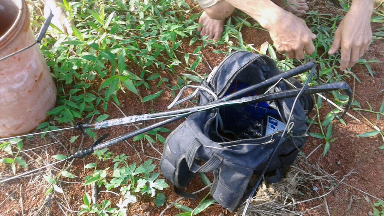 ที่เกิดเหตุพบนายธนพล แสงจำปี อายุ 36 ปี บ้านเลขที่ 177 หมู่. 5 ต.สว่างแดนดิน อ.สว่างแดนดิน จ.สกลนคร และนายธีรพงค์ ณ เชียงขวาง อายุ 29 ปี บ้านเลขที่ 40 หมู่ 10 ต.โพธิ์หมากแข้ง อ.บึงโขงหลง จ.บึงกาฬ กำลังช่วยกันใช้ไฟฟ้าจากแบตเตอรี่จี้ช็อตตัวปลาในลำห้วย จึงเข้าจับกุมพร้อมยึดของกลางแบตเตอรี่ขนาด 12 โวลต์ 1 ลูก หม้อแปลงไฟฟ้า 1 เครื่องและ เหล็กปล่อยกระแสไฟฟ้า 1 คู่. นอกจากนี้ยังมีปลาที่ได้จากการใช้กระไฟฟ้าช็อตประมาณ 1 กิโลกรัม