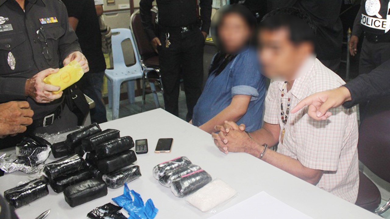 ทั้งนี้ ร.ต.อ.ณรงค์ สุ่มสังข์ รอง สวป.สภ.ท่ายาง พร้อมเจ้าหน้าที่ตำรวจชุดสายตรวจ ตั้งด่านเชิงสะพานบ้านหนองกี้ หมู่ที่ 5 ต.ท่ายาง กระทั่ง ด.ต.เด่นศักดิ์ บุญพ่วง ผู้บังคับหมู่งานป้องกันปราบปราม สังเกตเห็นรถยนต์นิสสัน ซันนี่ สีดำ ทะเบียน กจ 462 ประจวบคีรีขันธ์ พยายามขับเลี่ยงด่าน จึงขี่รถจักรยานยนต์ติดตามพร้อมส่งสัญญาณให้หยุดรถ พบ นายวิชัย โดยมี น.ส.กรรณิกา ภรรยาที่กำลังตั้งครรภ์กว่า 8 เดือน นั่งมาด้วย ตรวจค้นกระโปรงหลังรถพบกล่องพลาสติกใส่น้ำแข็งสีส้ม ภายในมีกระเป๋าเป้สีน้ำเงิน-ดำ ซุกซ่อนยาไอซ์และยาบ้า
