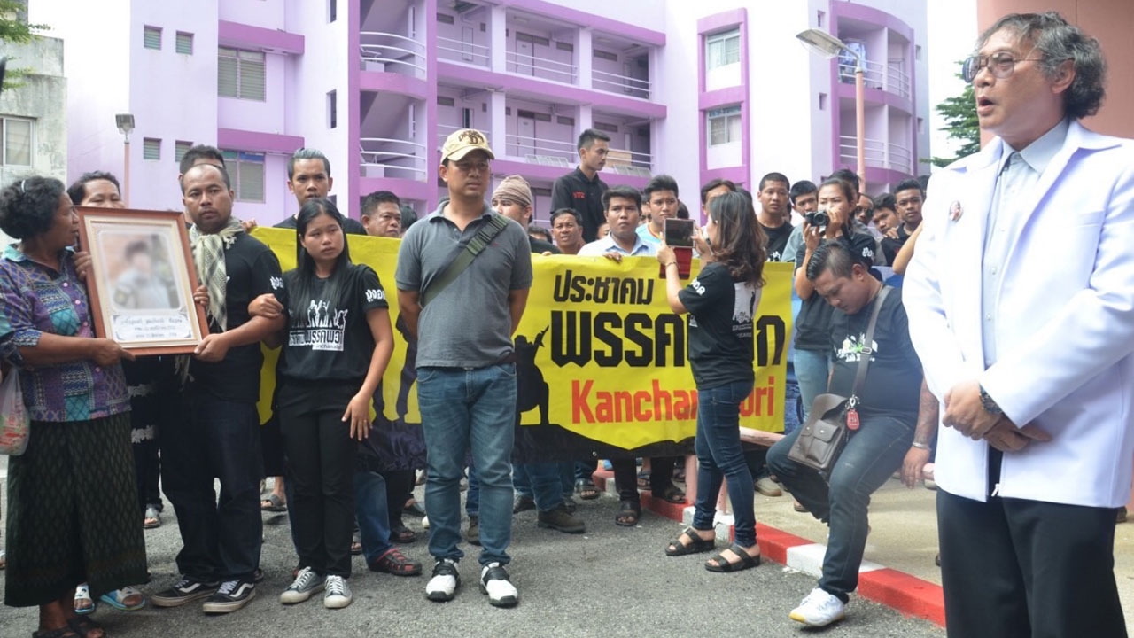 เมื่อเวลา 15.00 น. วันที่ 25 ก.ย.58 นางละมัย ชัยวงษ์ อายุ 62 ปี นายสามารถ ชัยวงษ์ อายุ 34 ปี นายสุพรรณ ชัยวงษ์ อายุ 32 ปี ชาว ต.ท่าตะคร้อ อ.ท่าม่วง จ.กาญจนบุรี แม่และพี่ชายของ ว่าที่ ร.ต.สมเกียรติ ชัยวงษ์ อายุ 26 ปี พนักงานบริษัทเอกชนชื่อดังแห่งหนึ่ง ในพื้นที่ อ.ท่าม่วง ที่เสียชีวิตจากการป่วยเป็นไข้เลือดออก เดินทางมาที่หน้าโรงพยาบาลธนกาญจน์ ถ.แสงชูโต ต.บ้านใต้ อ.เมือง เพื่อขอรับทราบขั้นตอนรักษาของแพทย์เจ้าของไข้ โดยมีญาติพี่น้อง และเพื่อนๆ ของผู้เสียชีวิตกว่า 100 คน พร้อมใจกันสวมเสื้อสีดำมาประท้วง โดยบรรยากาศเป็นไปอย่างตึงเครียด