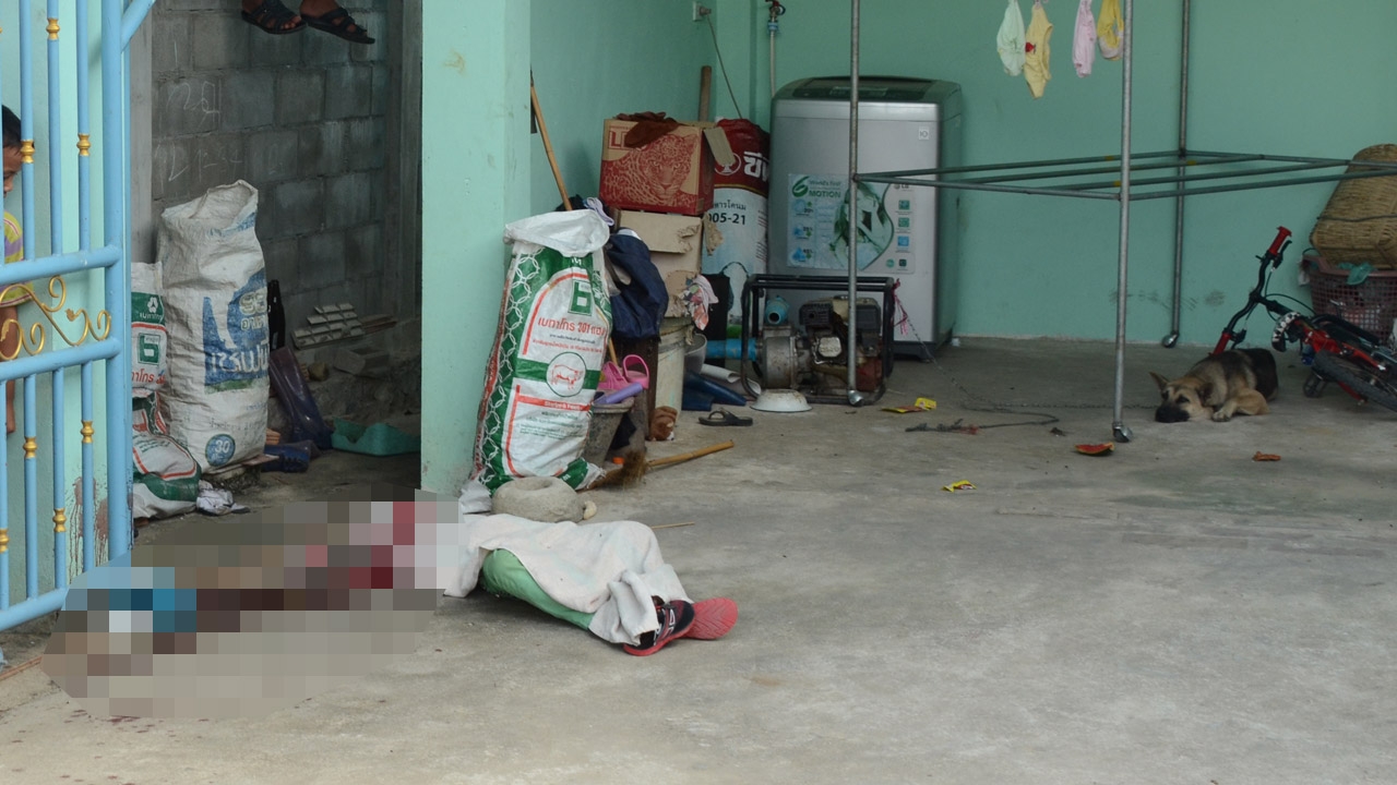 ที่เกิดเหตุ บริเวณด้านในรั้ว พบศพเด็กชายอายุประมาณ 6 ขวบ ถูกฟันคอเกือบขาดจมกองเลือด เข้าไปในบ้านกลางห้องโถงข้างโซฟา พบศพเด็กชาย 2 คน นอนหงายสภาพถูกฟันไปทั่วร่าง ในห้องนอนพบศพเด็กชายอีก 1 ศพ นอนหงายมีรอยถูกฟันบริเวณลำตัวจมกองเลือด และยังมีผู้ได้รับบาดเจ็บเป็นเด็กชายอีก 1 คน ถูกฟันตามร่างกาย เสียชีวิตในเวลาต่อมาที่ รพ.ไชยปราการ ส่วนผู้ได้รับบาดเจ็บ ทราบชื่อ นางยี่ก่อ แซ่เจิ้น อายุ 33 ปี ซึ่งเป็นหญิงท้องแก่ และเป็นป้าของเด็กที่เสียชีวิต ถูกฟันบริเวณใบหน้าบาดเจ็บสาหัส สำหรับเด็กที่เสียชีวิตเป็นชายอายุระหว่าง 5 - 8 ปี