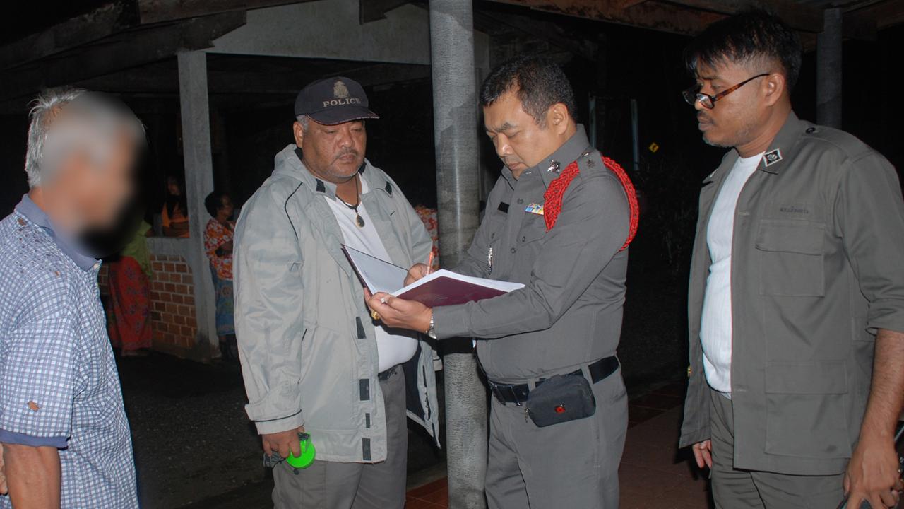 เมื่อเวลา 23.30 น. วันที่ 27 ก.ย.58 พ.ต.ท.คณากร ดลเกศศิริ สารวัตรเวร สภ.เมืองตรัง รับแจ้งเหตุ เจ้าของบ้านยิงผู้อื่นเสียชีวิต ที่บ้านเลขที่ 17 หมู่ 4 ต.นาบินหลา อ.เมือง จ.ตรัง หลังรับแจ้งจึงรายงานให้ผู้บังคับบัญชาทราบ แล้วรุดไปตรวจสอบพร้อมด้วย พ.ต.ท.ภูมิ บาลทิทย์ รอง ผกก.ป.สภ.เมืองตรัง พ.ต.ต.สิทธิพันธ์ พันธ์ศิริ สวป. พร้อมชุดสืบสวน สภ.เมืองตรัง และประสานไปยัง พ.ต.ท.สราวุธ จงจิต รอง ผกก.หน.พิสูจน์หลักฐานตำรวจภูธรจังหวัดตรัง เจ้าหน้าที่มูลนิธิกุศลสถานตรังไปร่วมตรวจสอบ