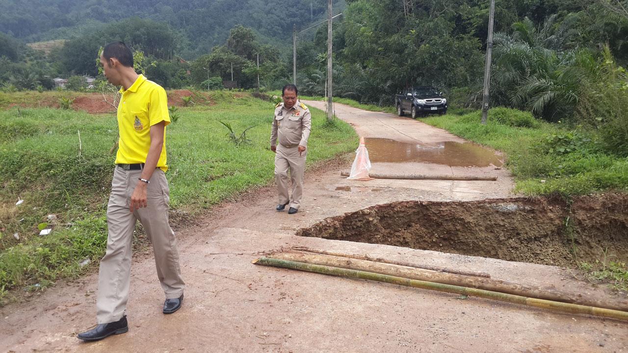 เมื่อเวลา 13.00 น. วันที่ 28 ก.ย. 58 นายนิกร จันทร์อำไพ นายอำเภอเมืองพังงา พร้อมด้วย นายวชิรา ปรียวาณิชย์ รองผู้อำนวยการฝ่ายปฏิบัติการ สำนักงานบำรุงทางพังงา นายสุทธิพร เรืองผล หัวหน้าหมวดทางหลวงพังงา นำกำลังเจ้าหน้าที่เข้าตรวจสอบ พร้อมช่วยเหลือ เหตุน้ำกัดเซาะริมตลิ่ง คลองทุ่งคาโงก หมู่ 7 ต.นบปริง อ.เมือง จ.พังงา ทำความเสียหายไหล่ทาง และถนนเพชรเกษมสายหลัก พังงา-ตะกั่วป่า เสาไฟฟ้าล้มเสียหายประมาณ 4 ต้น ส่งผลให้ไฟฟ้าในพื้นที่หมู่ 7 ต.นบปริง ในบางพื้นที่ ต.ทุ่งคาโงก อ.เมืองพังงา ใช้การไม่ได้ ด้านเจ้าหน้าที่เร่งให้ความช่วยเหลือ โดยเบื้องต้นคำนวณดินที่ถูกแรงน้ำกัดเซาะและพัดพา เพื่อนำดินมาปรับผิวพื้นถนนและสามารถใช้ในการสัญจรไปมาได้ อีกทั้งแจ้งเตือนประชาชน ที่ใช้รถ ใช้ถนน ผ่านเส้นทางถนนเพชรเกษม สายพังงา-ตะกั่วป่า บ้านกงสี หมู่ 7 ต.นบปริง อ.เมือง จ.พังงา ให้ขับขี่ด้วยความระมัดระวังและชะลอความเร็ว
